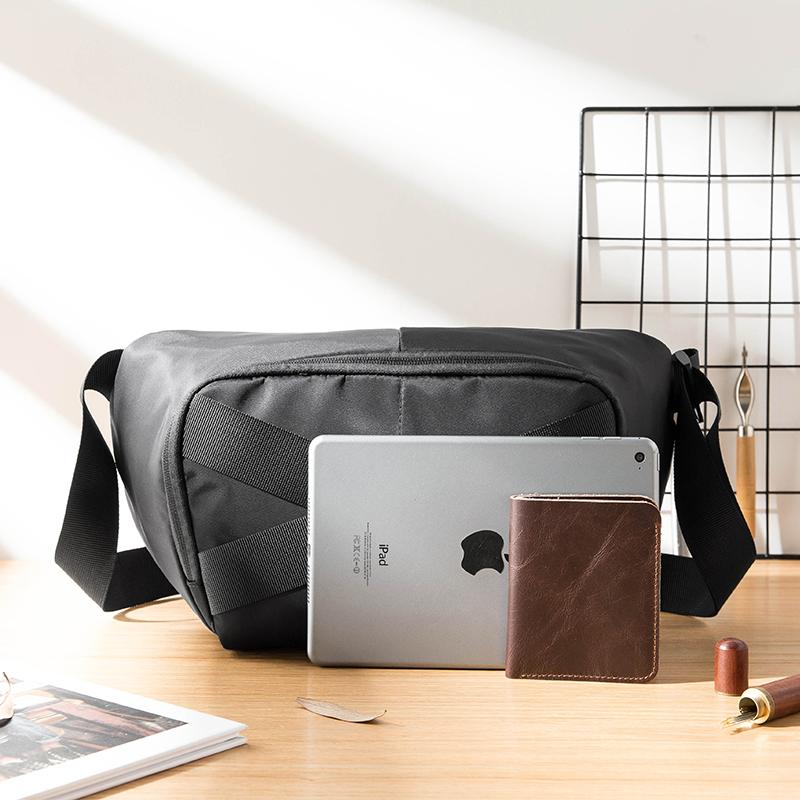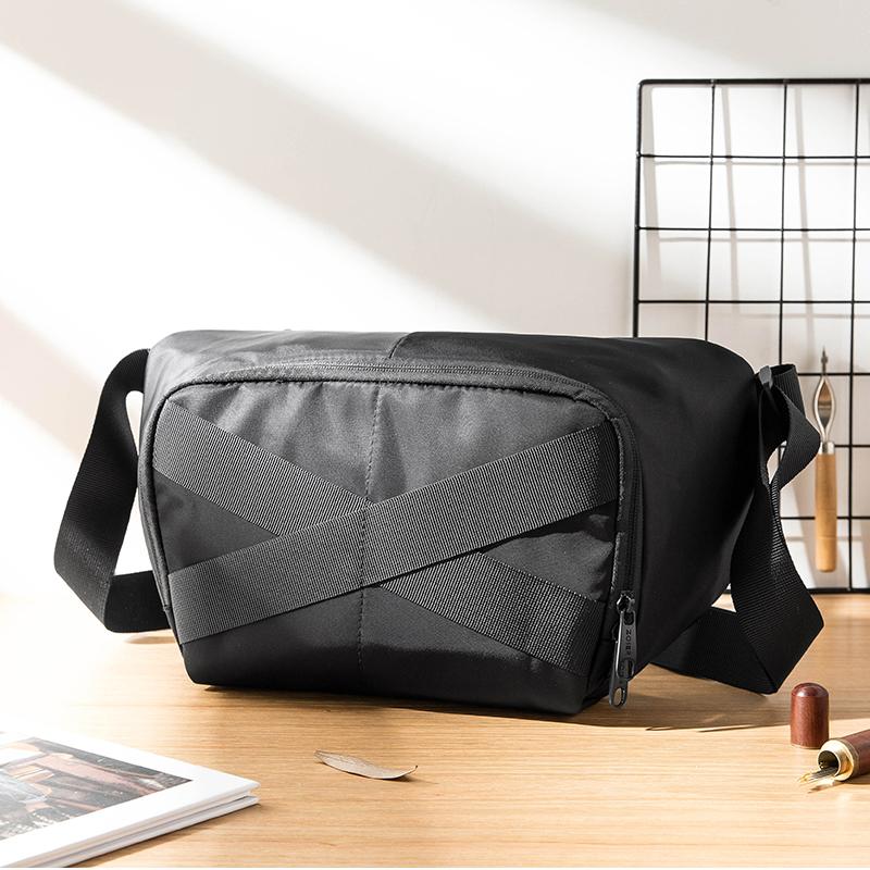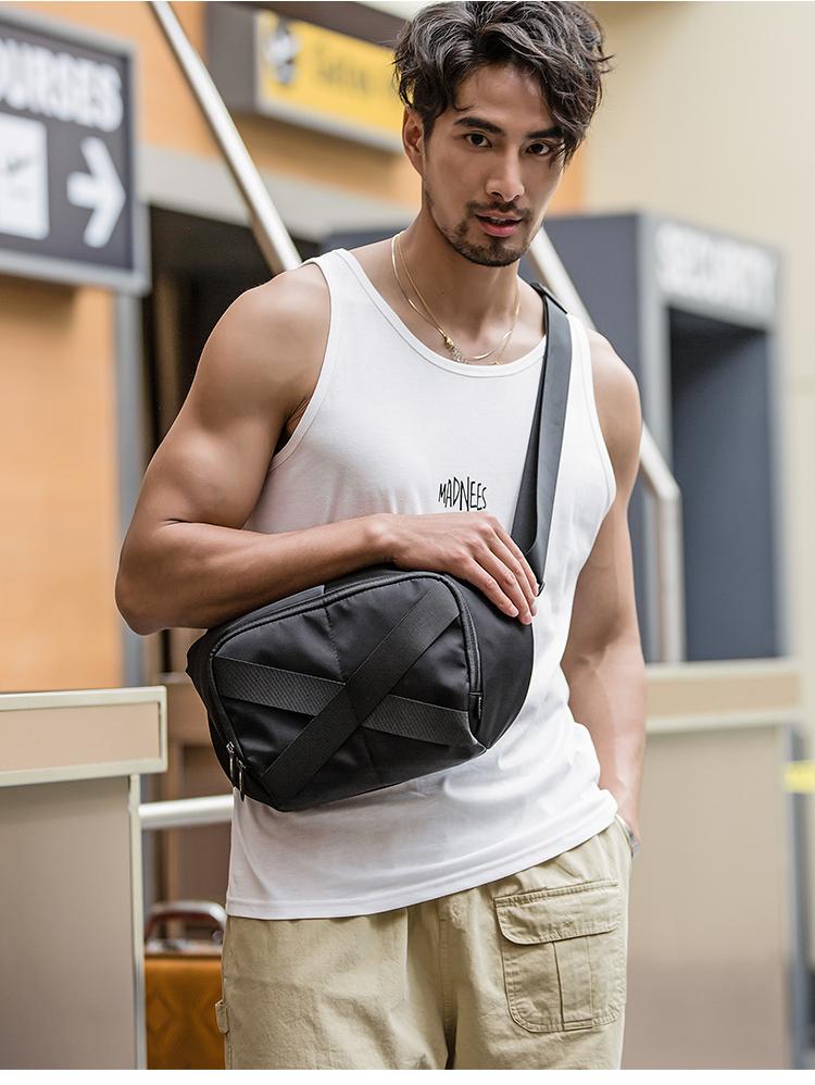 Design: Black Casual Mens 10 inches Chest Bag One Shoulder Backpack Black Messenger Bags Side Bag for Men