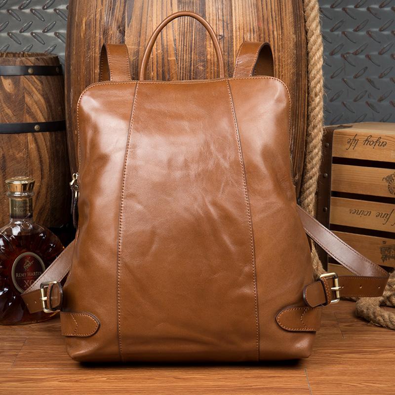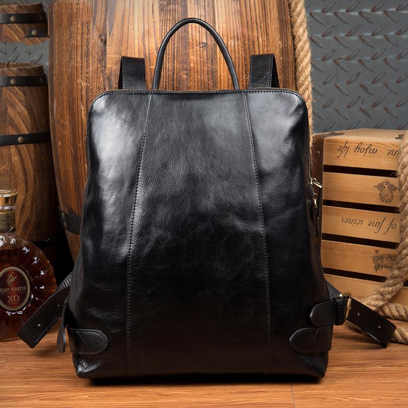 Style: Black Casual Mens Leather 15-inch Computer Backpacks Brown Travel Backpack School Backpacks for men