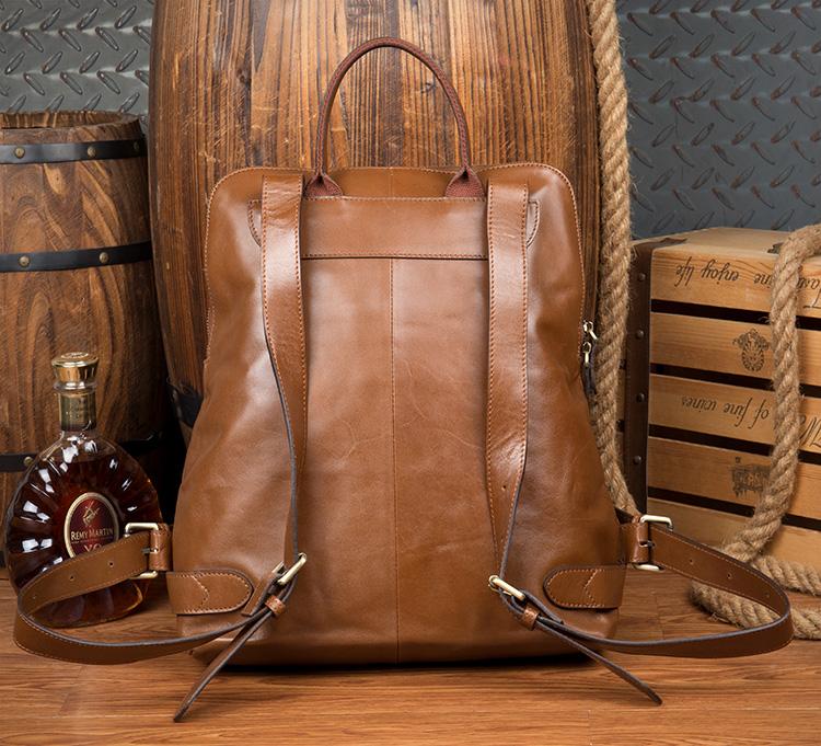 Design: Black Casual Mens Leather 15-inch Computer Backpacks Brown Travel Backpack School Backpacks for men