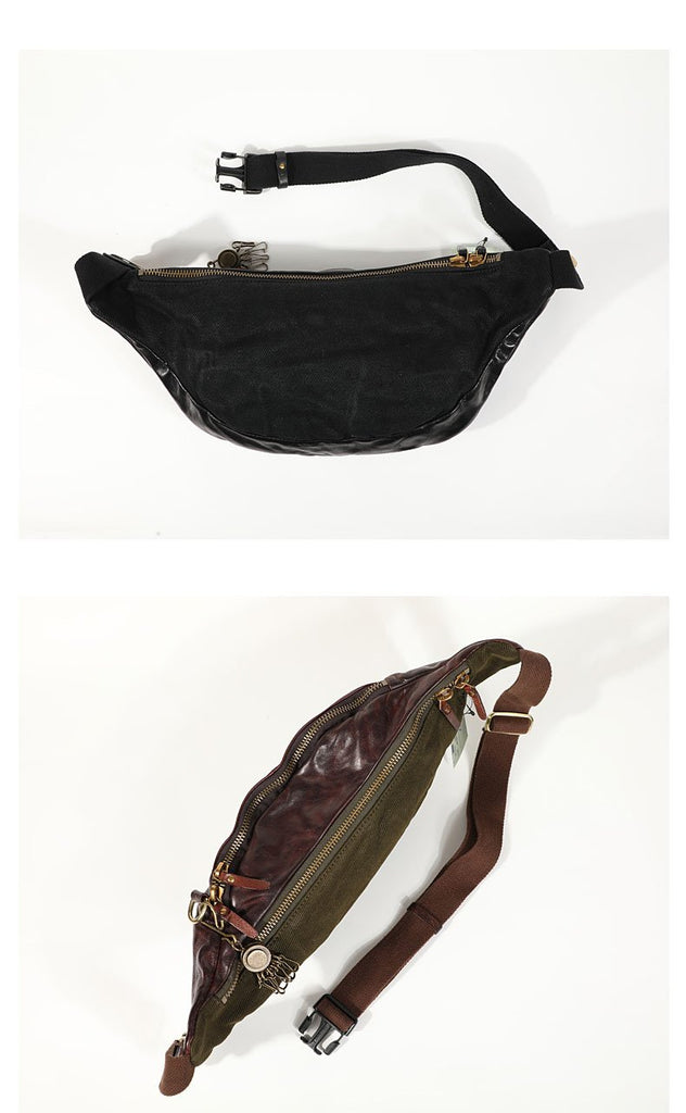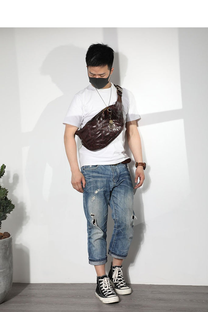 Design: Black Cool Leather Men Fanny Pack Waist Bag Hip Pack Chest Bag 10 inches Belt Bag Bumbag for Men