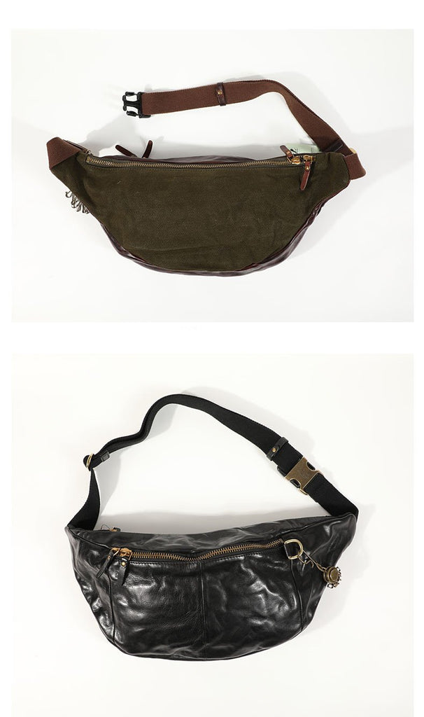 Style: Black Cool Leather Men Fanny Pack Waist Bag Hip Pack Chest Bag 10 inches Belt Bag Bumbag for Men