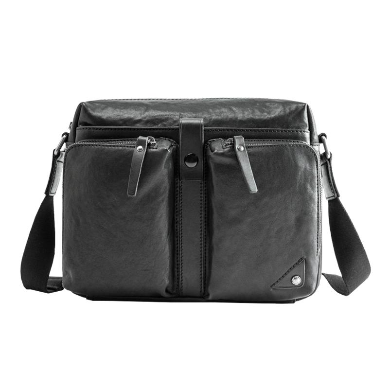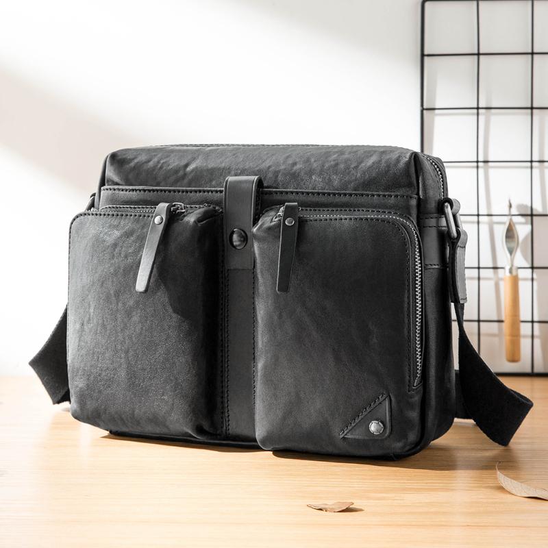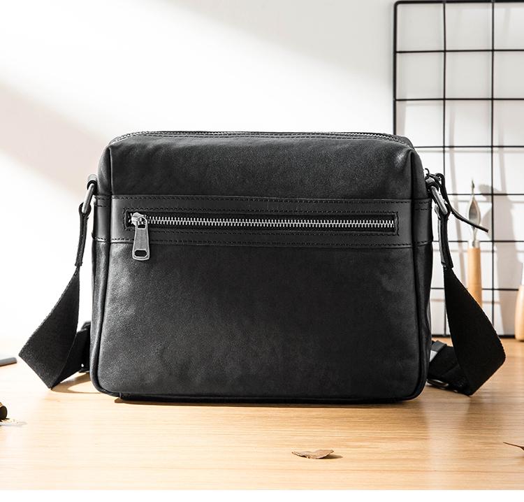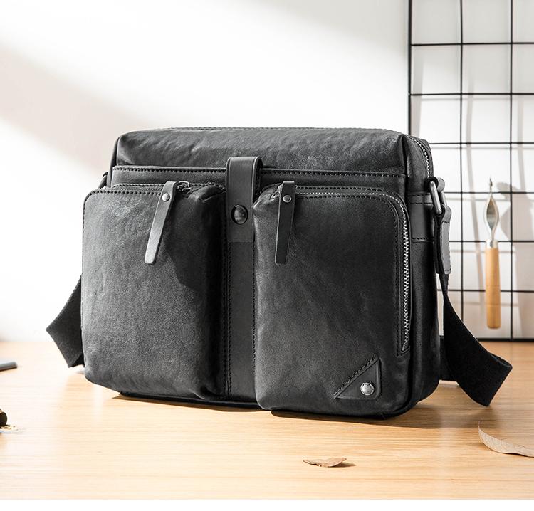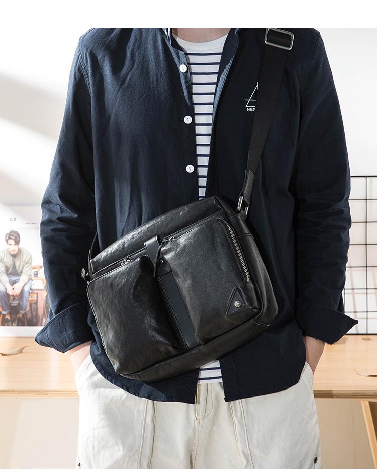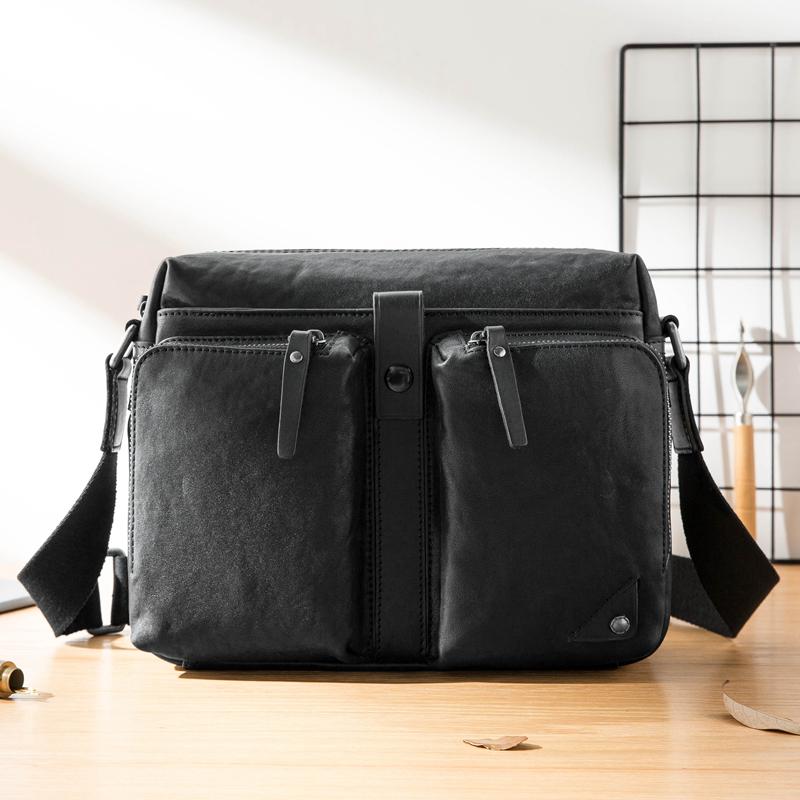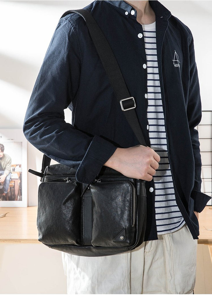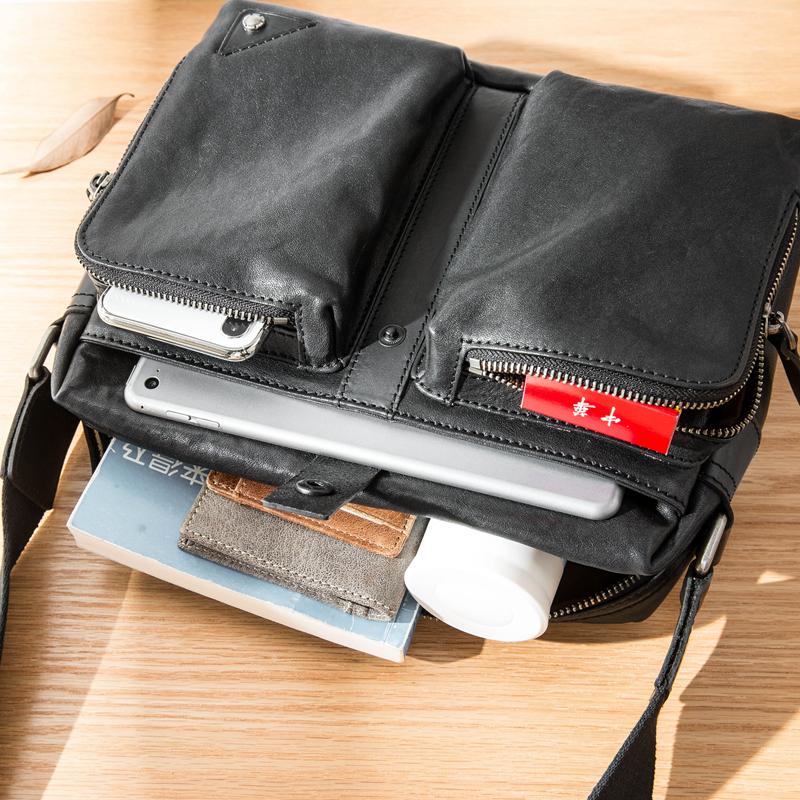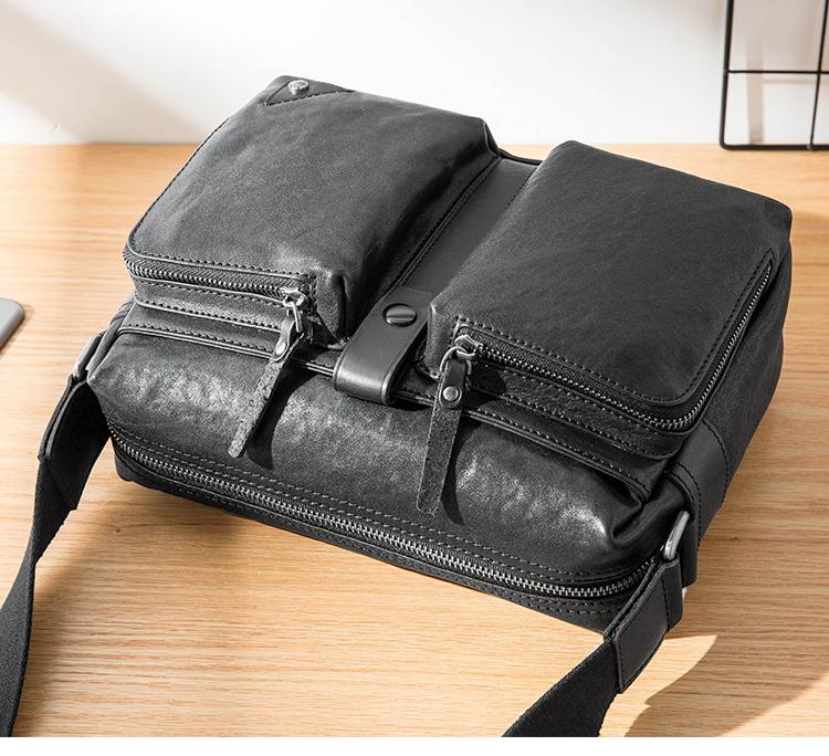 Design: Black Cool Leather Mens 13 inches Large Messenger Bags Shoulder Bags Crossbody Bag for Men