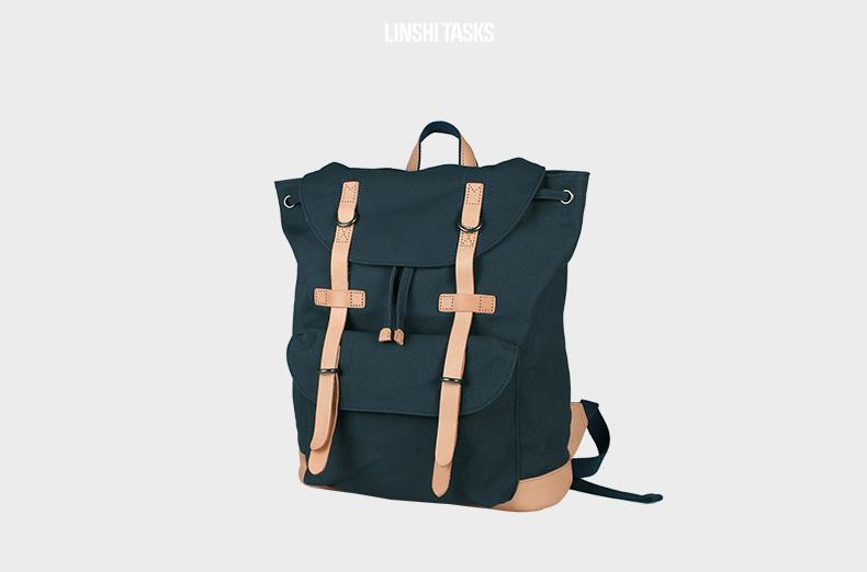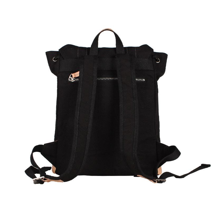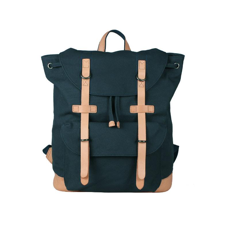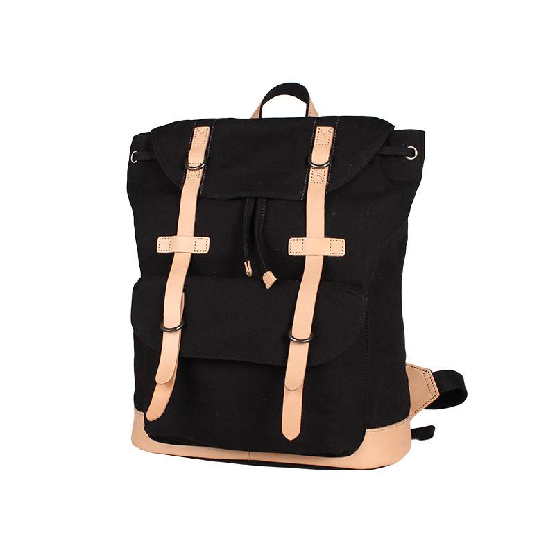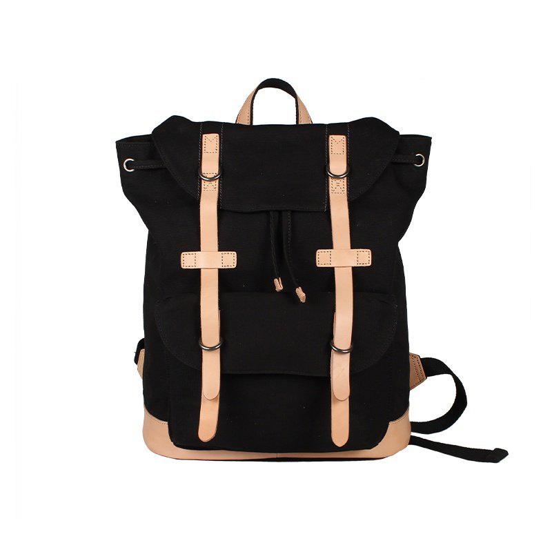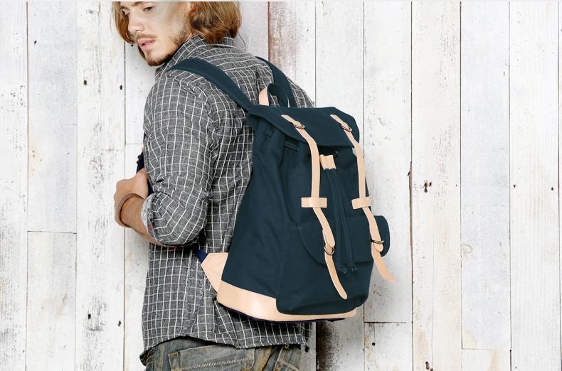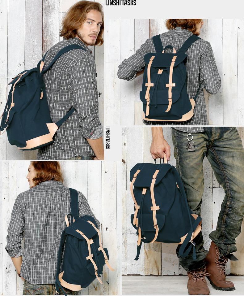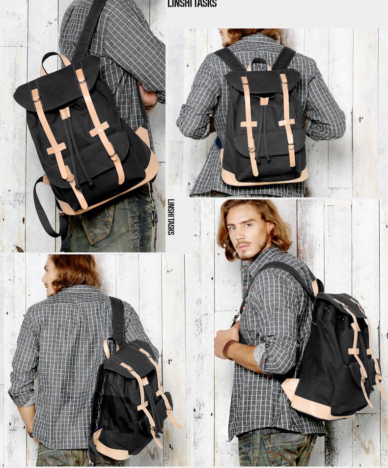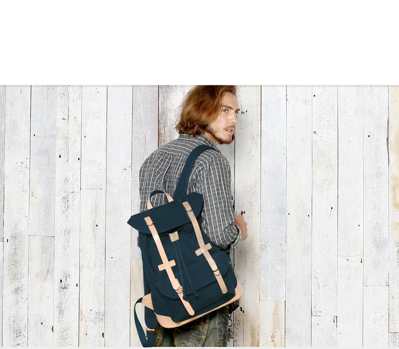 Design: Black Fashion Canvas Leather Mens Laptop Backpack Navy Blue College Backpack Travel Backpack for Men