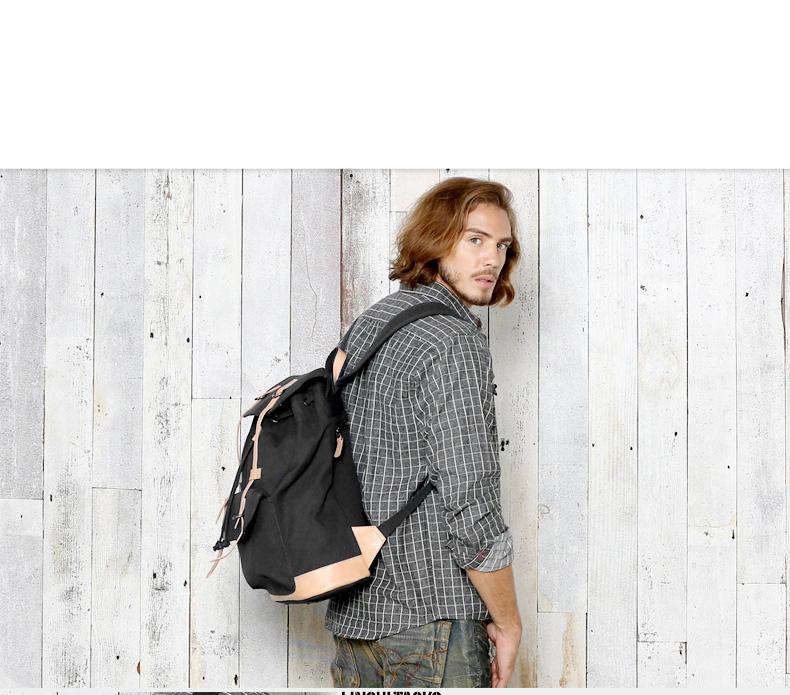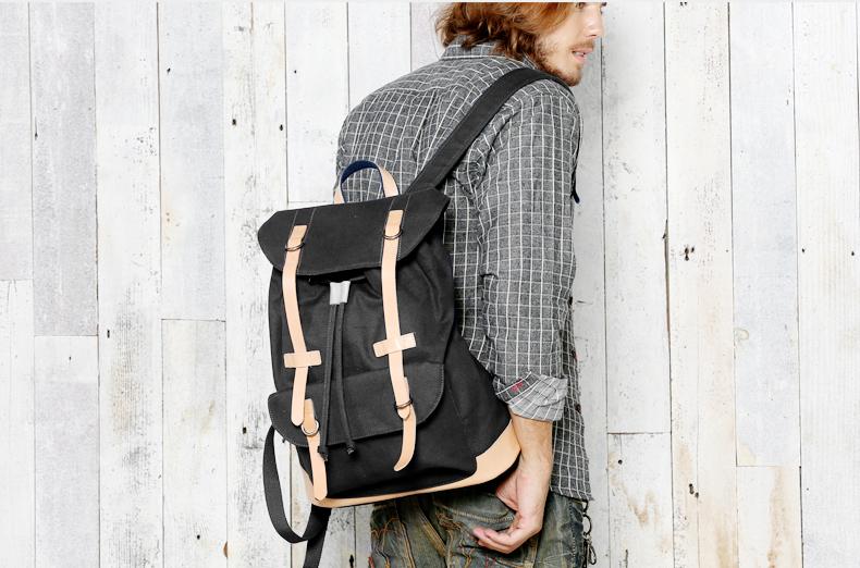 Style: Black Fashion Canvas Leather Mens Laptop Backpack Navy Blue College Backpack Travel Backpack for Men