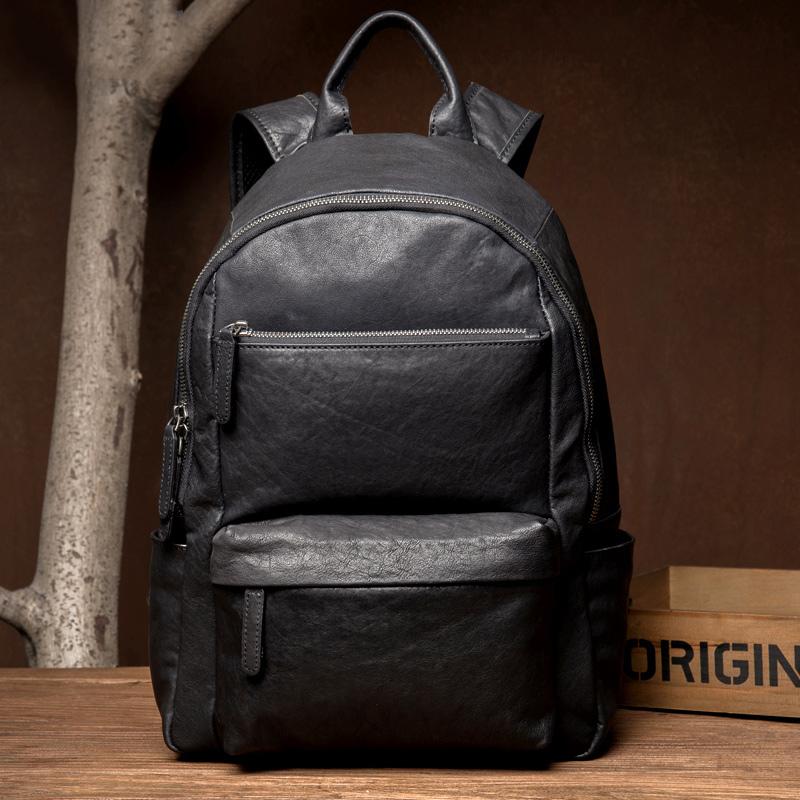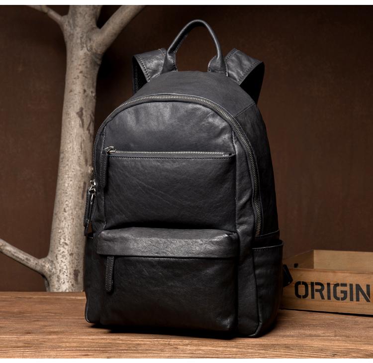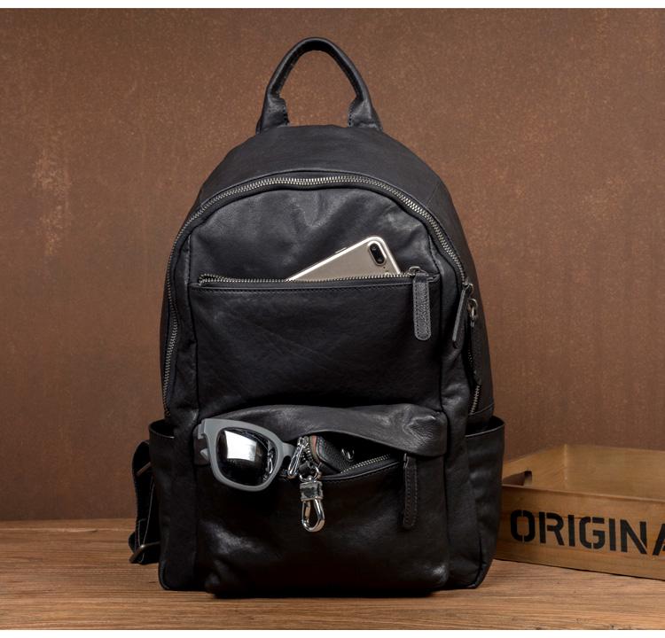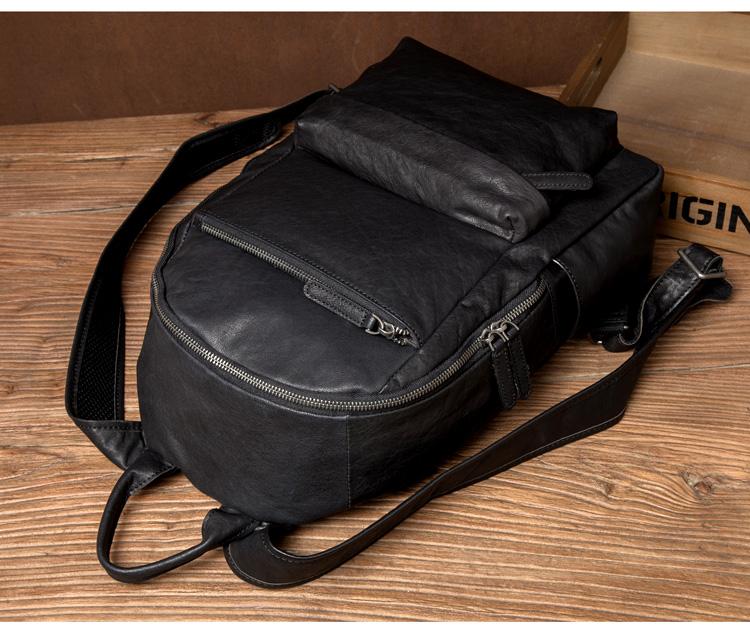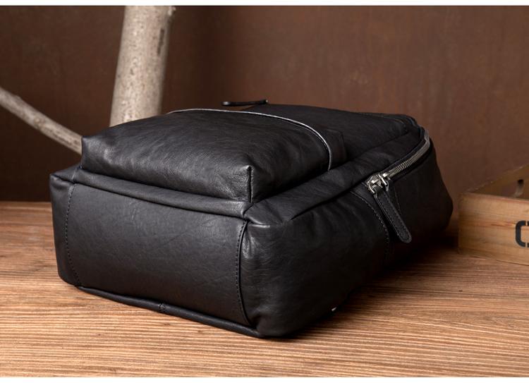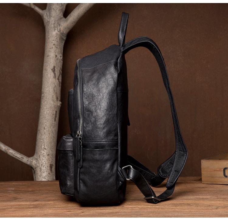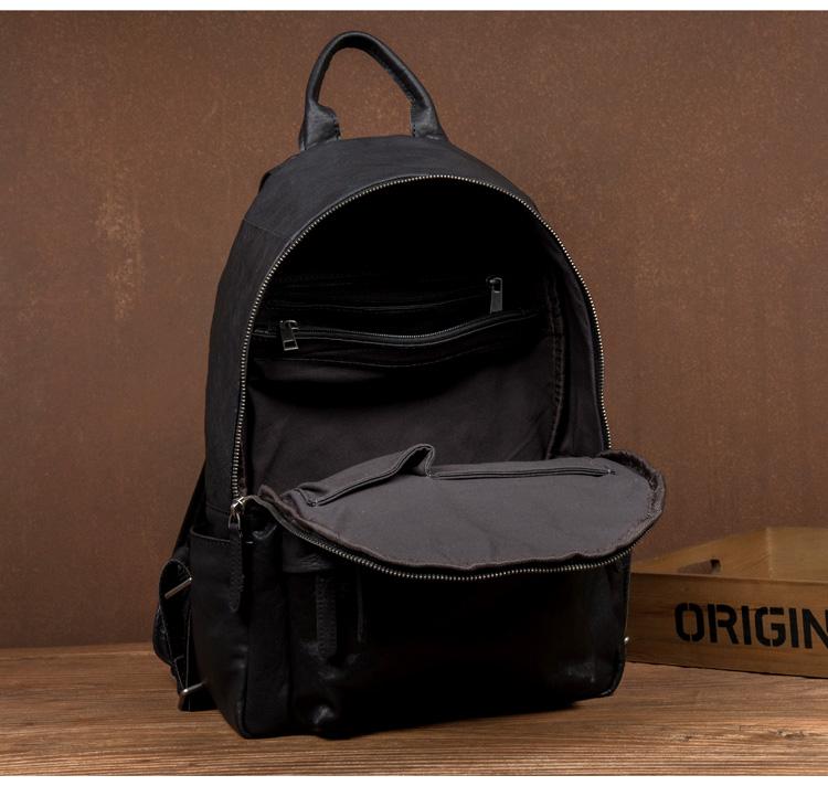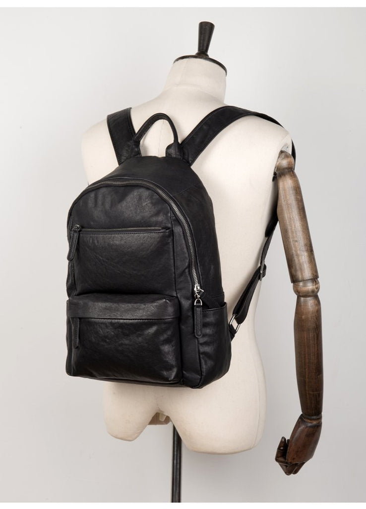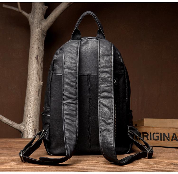 Design: Black Fashion Mens Leather 13-inch Computer Backpacks Cool Travel Backpacks School Backpack for men