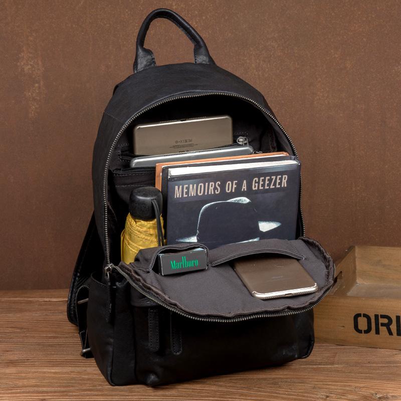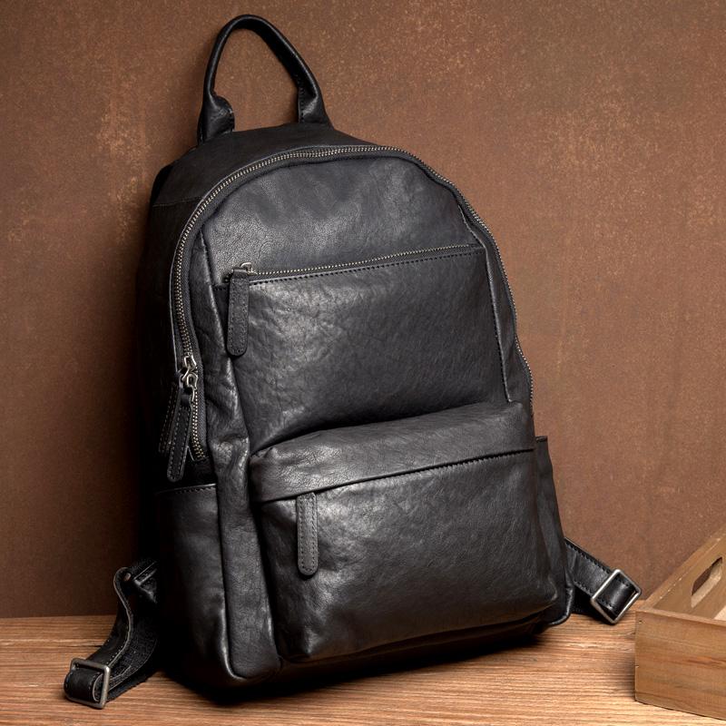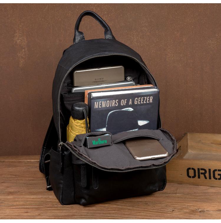 Style: Black Fashion Mens Leather 13-inch Computer Backpacks Cool Travel Backpacks School Backpack for men