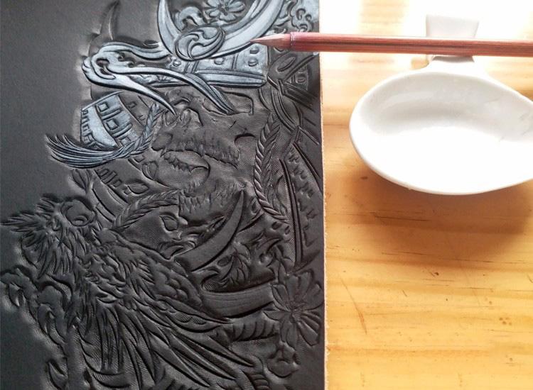 Design: Black Handmade Tooled Indian Chief Skull Leather Mens Long Wallet Bifold Long Wallet For Men