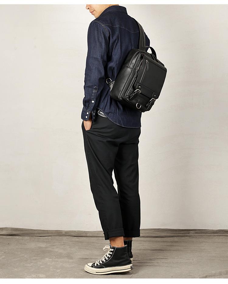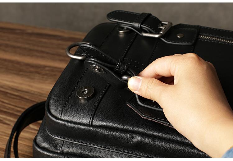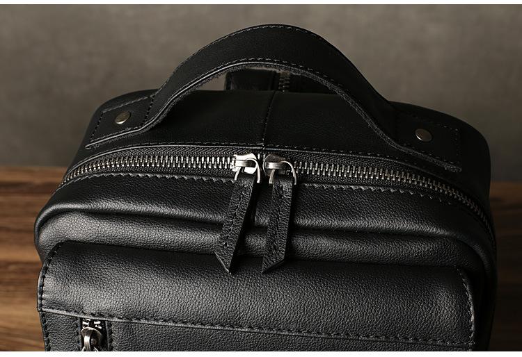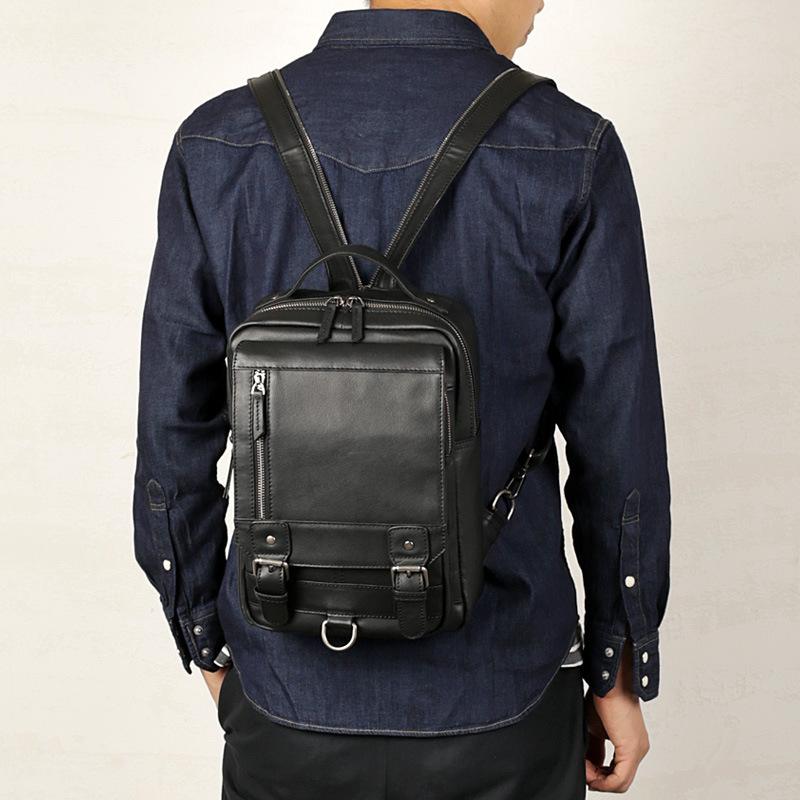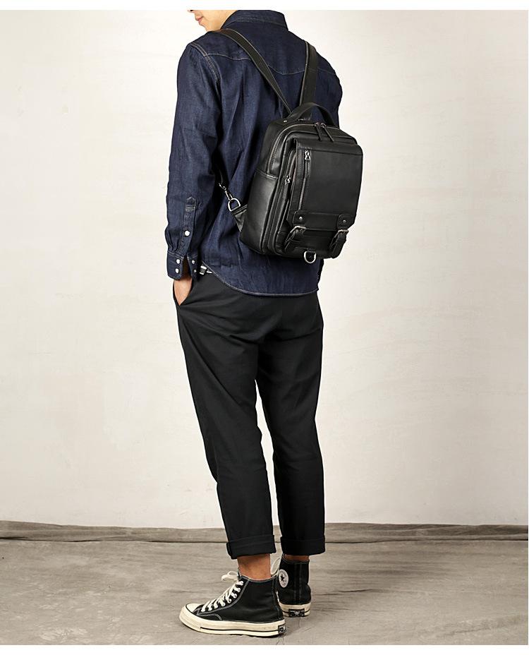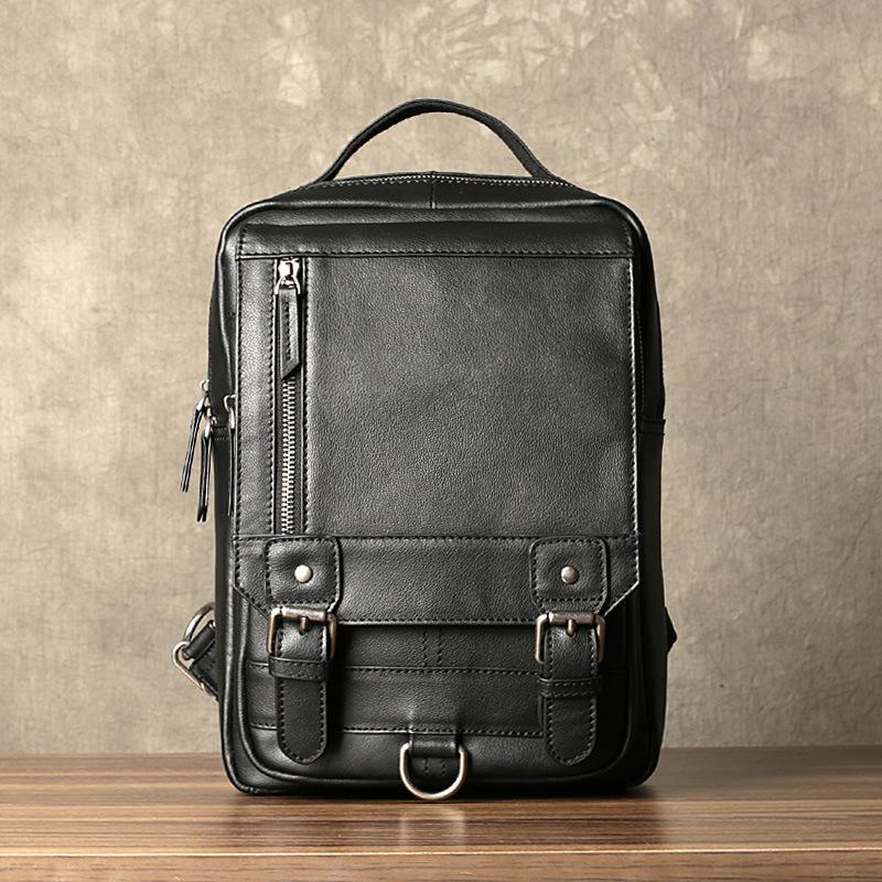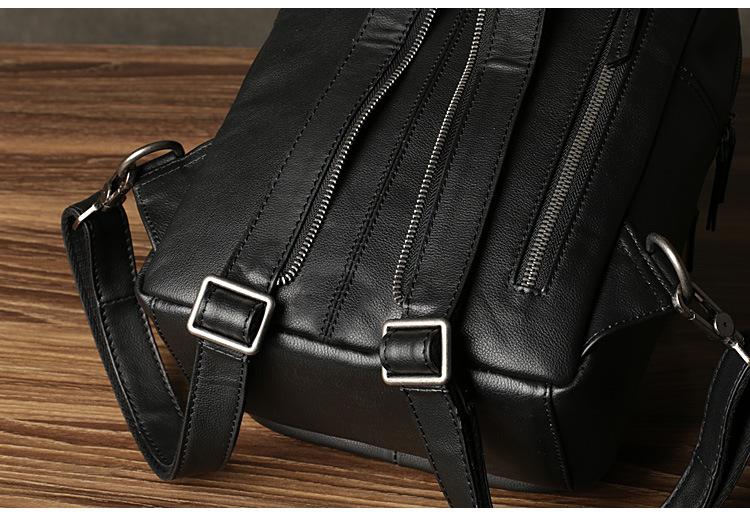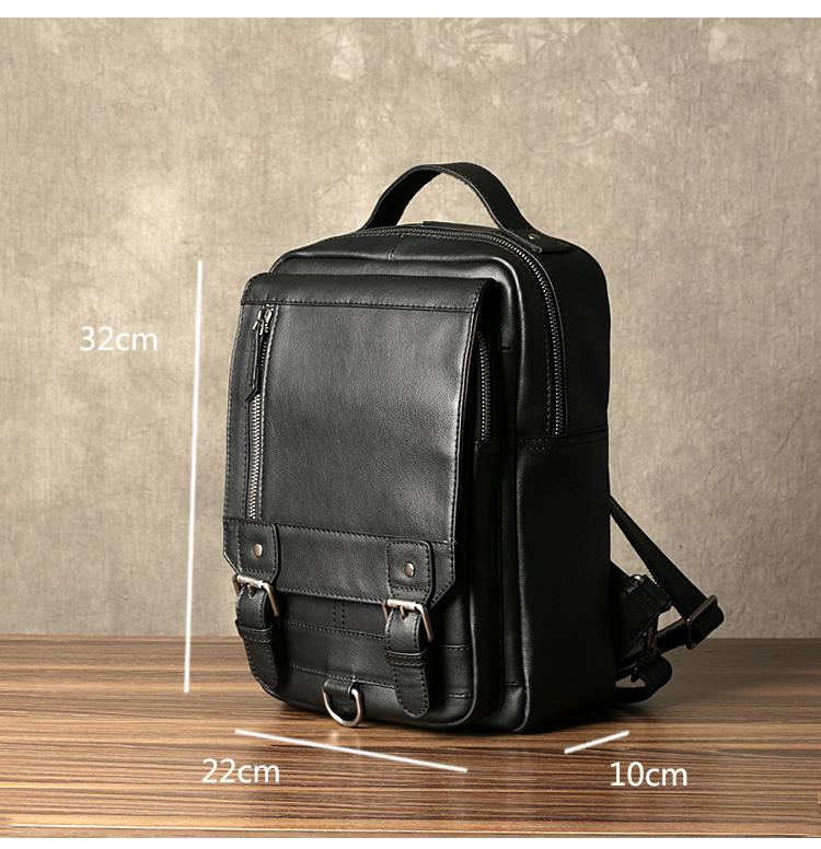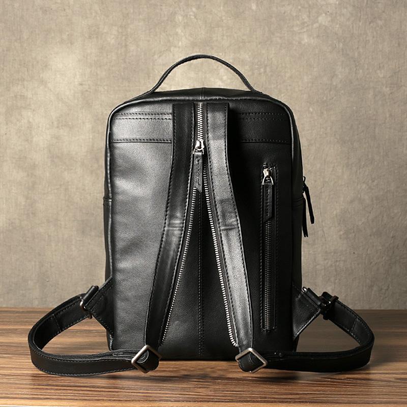 Design: Black Leather Men's 10 inches Large Computer Backpack Black Large Travel Backpack Black Large College Backpack For Men