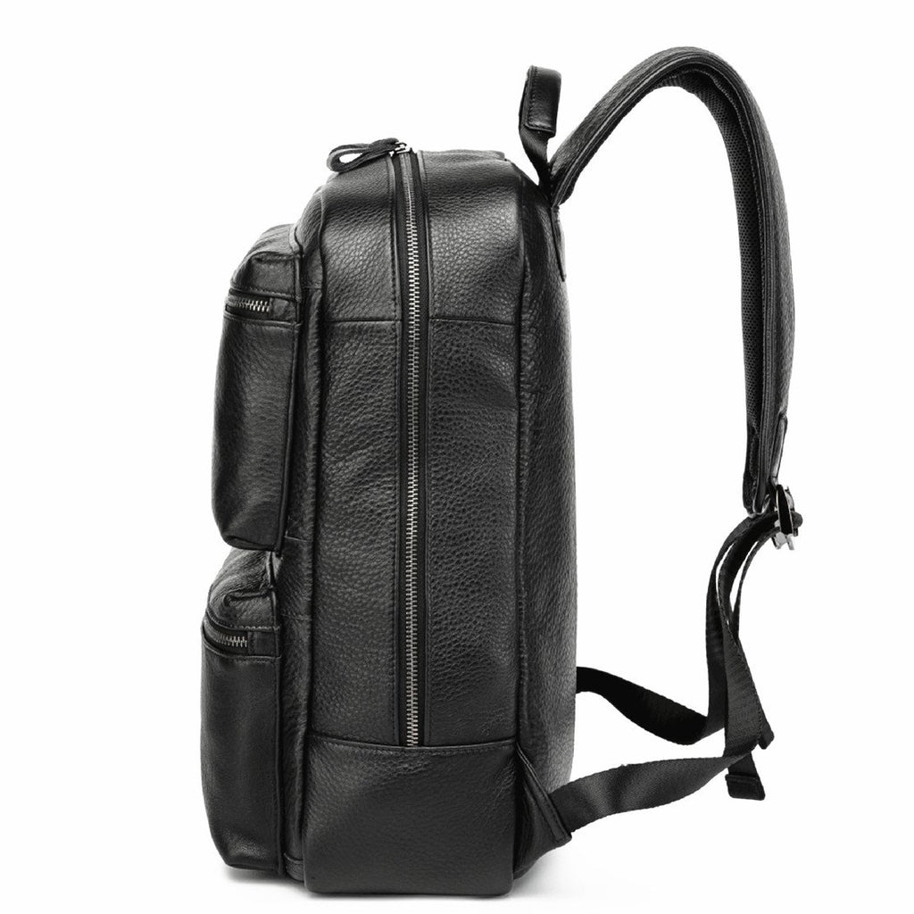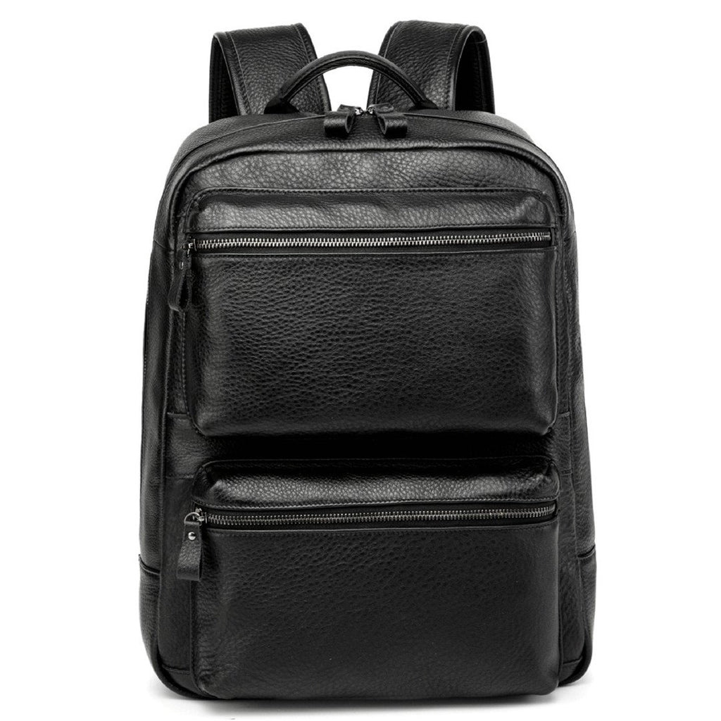 Design: Black Leather Men's 14 inches Computer Backpack Large Travel Backpack Black Large College Backpack For MenOverview: