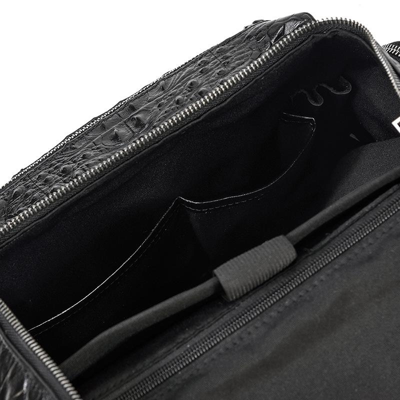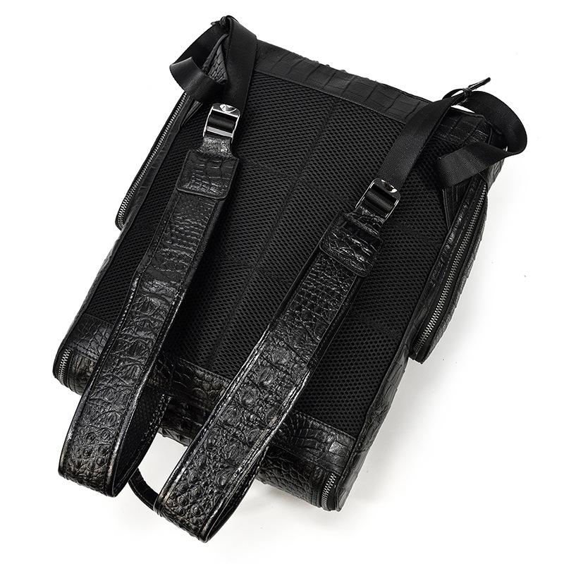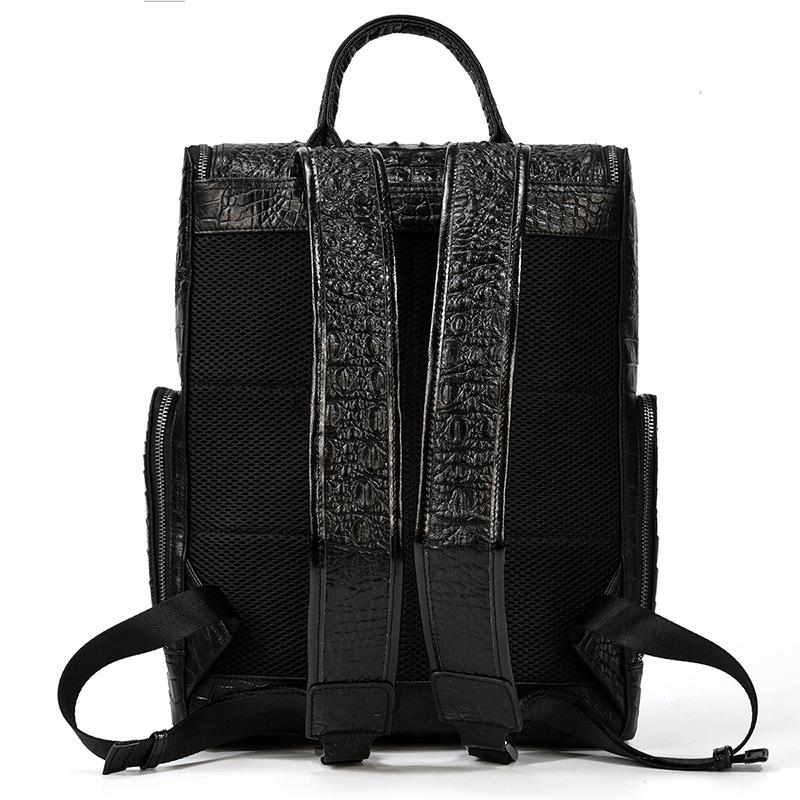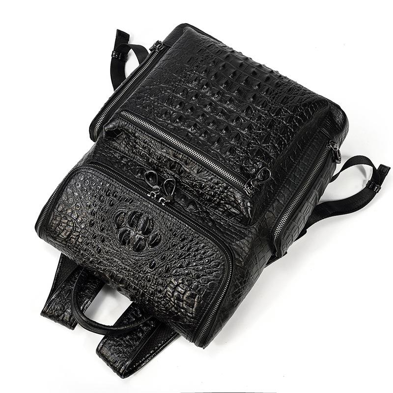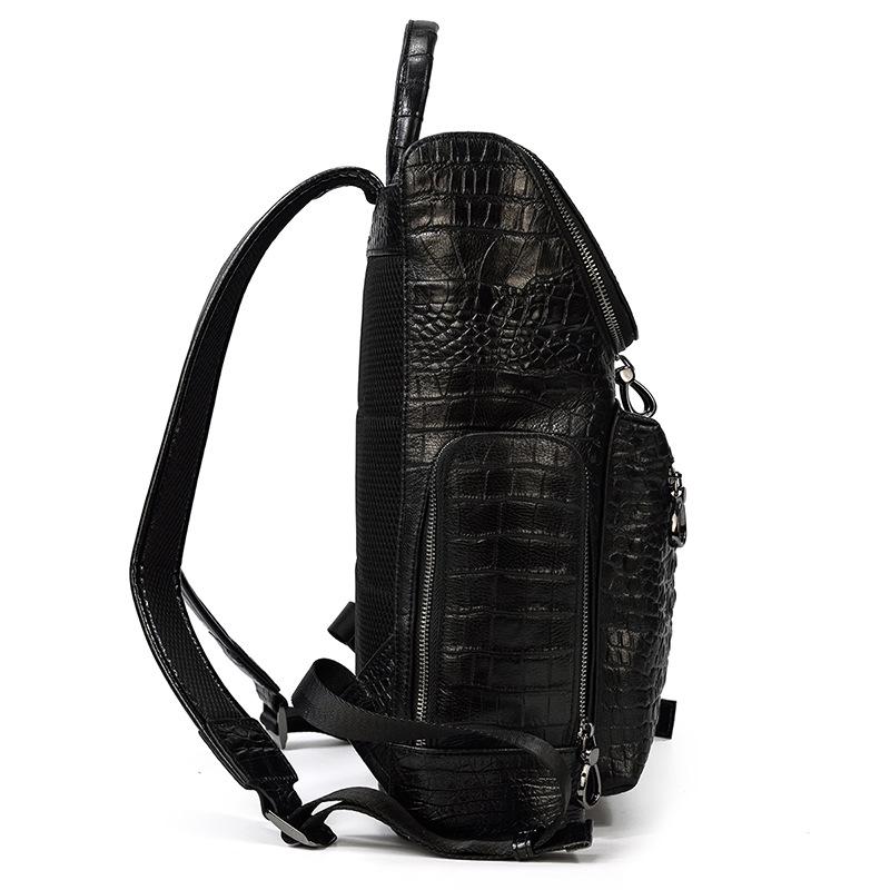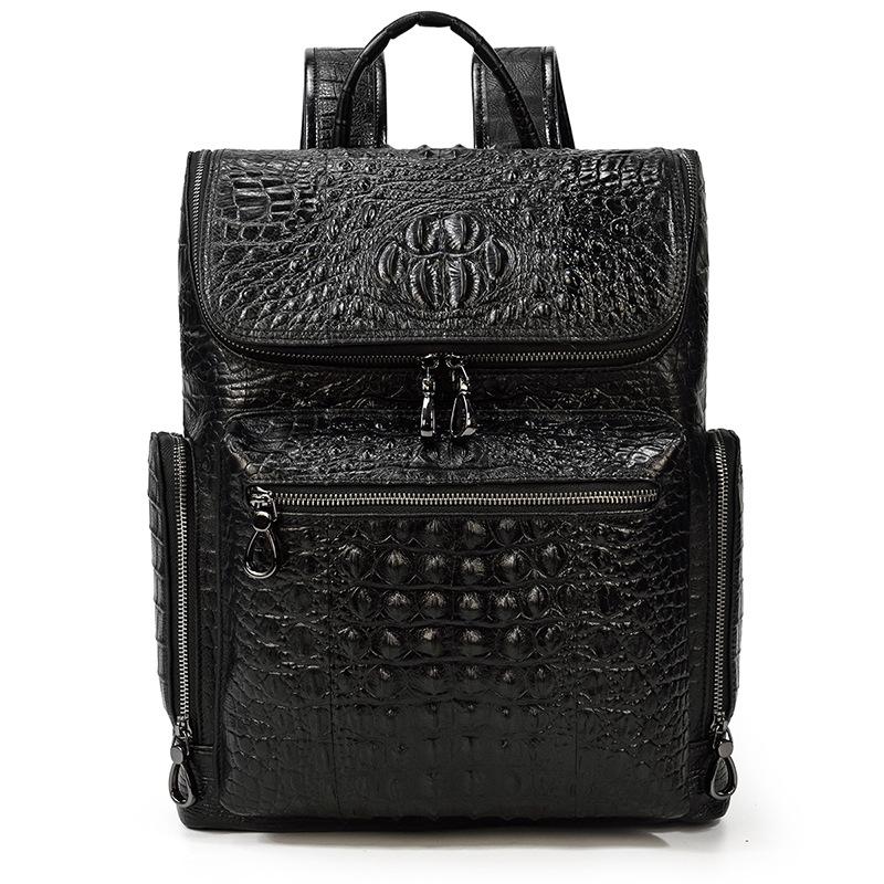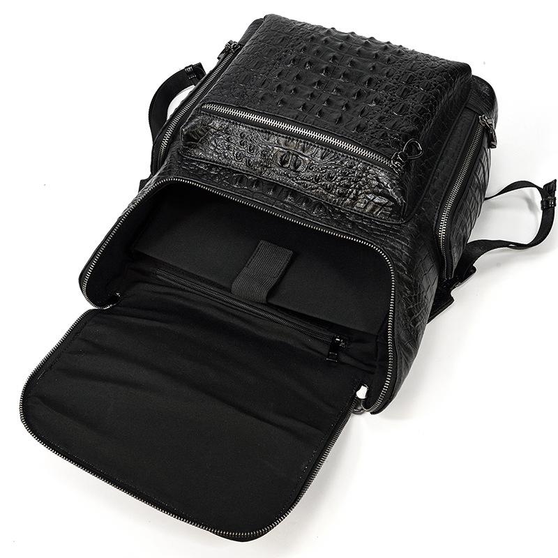 Design: Black Crocodile Pattern Leather Men's 14 inches Computer Backpack Black Travel Backpack College Backpack For Men