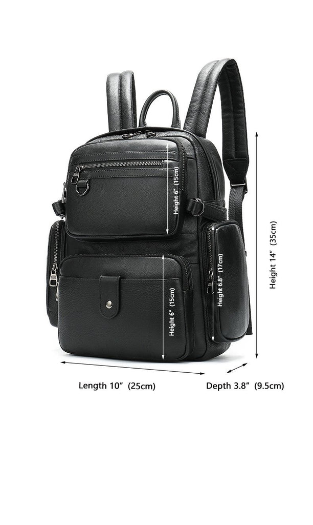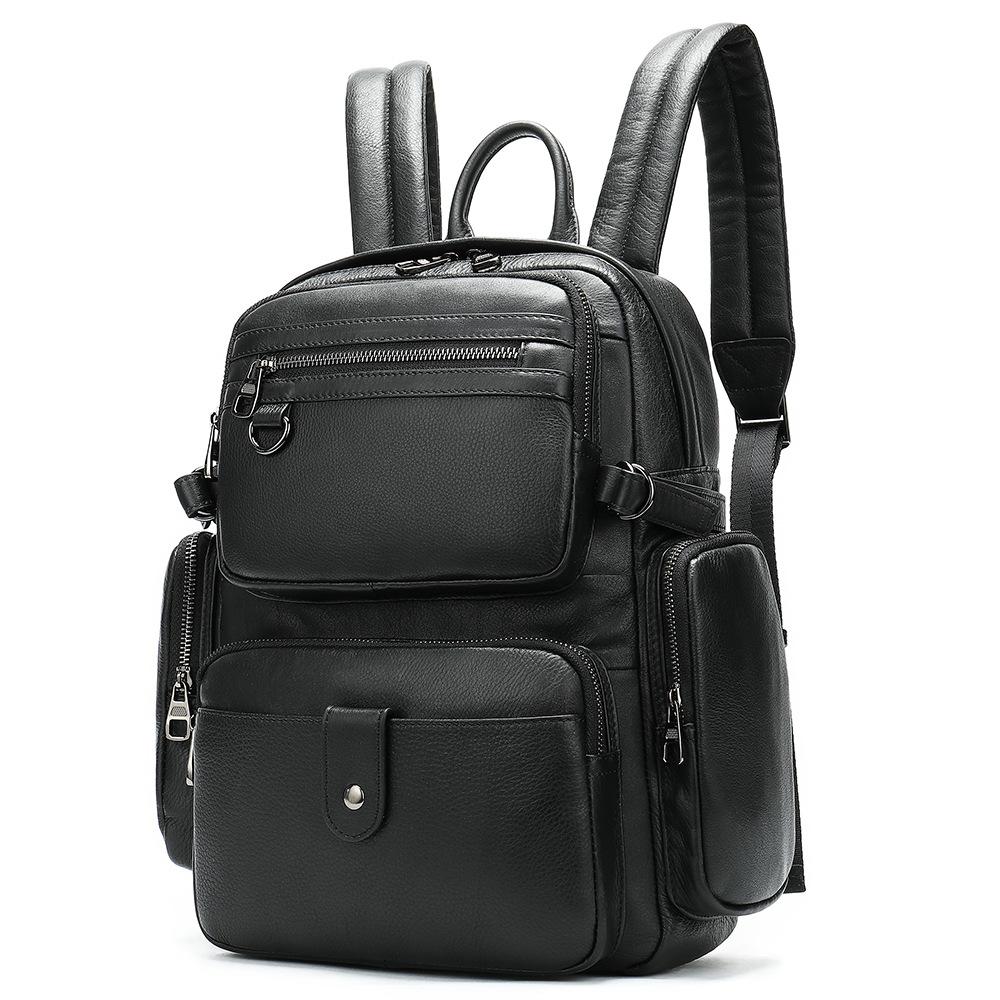 Design: Black Leather Men's 14 inches Large Computer Backpack Large Travel Backpack Black Large College Backpack For MenOverview: