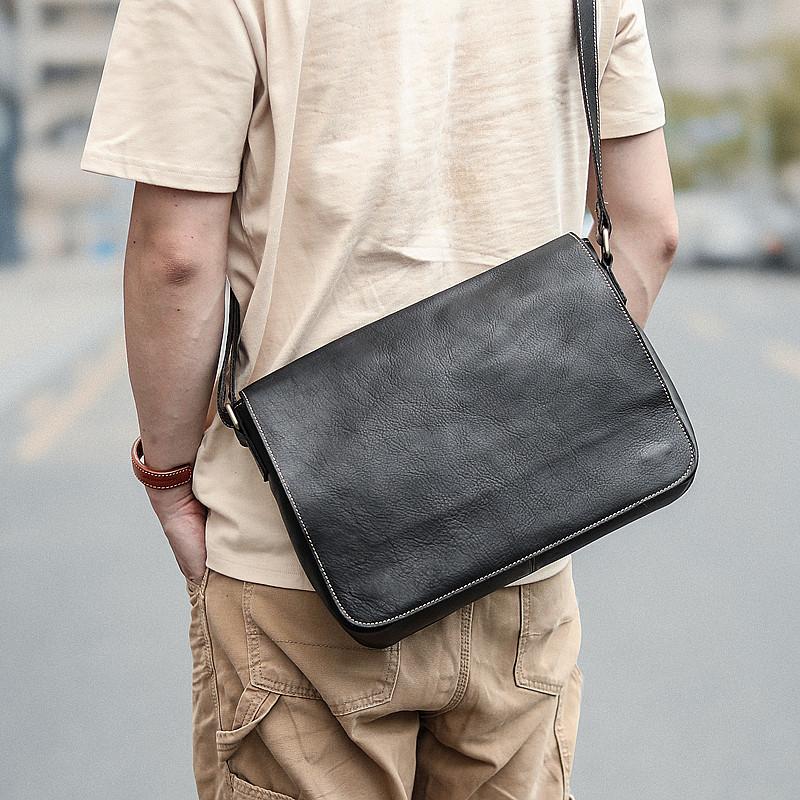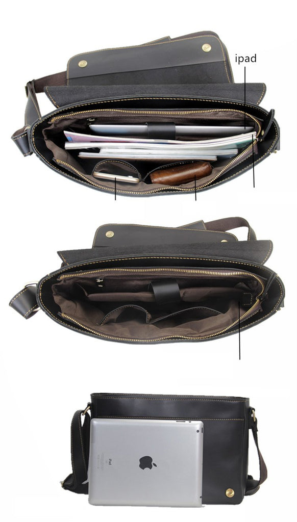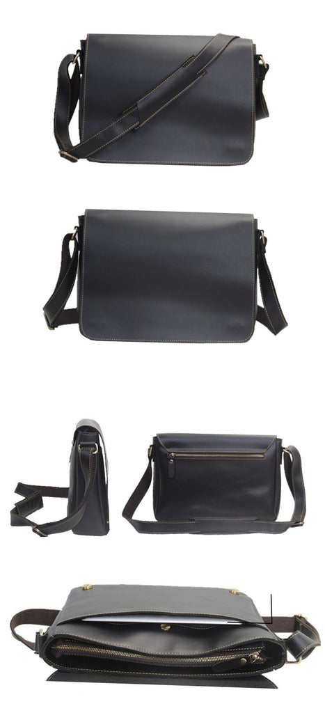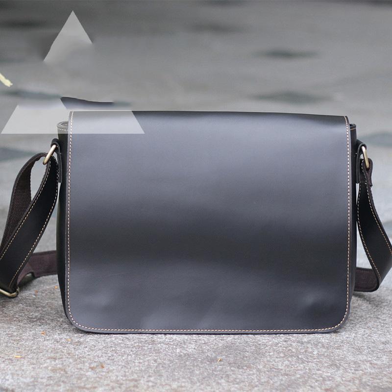 Design: Black Leather Mens Casual 11 inches Courier Bags Messenger Bag Dark Brown Postman Bags For Men