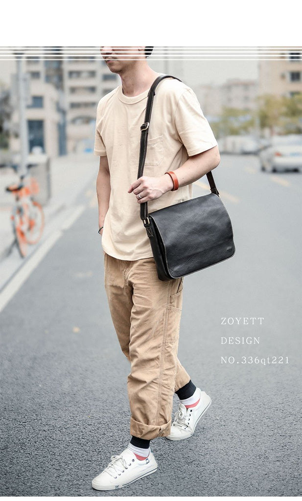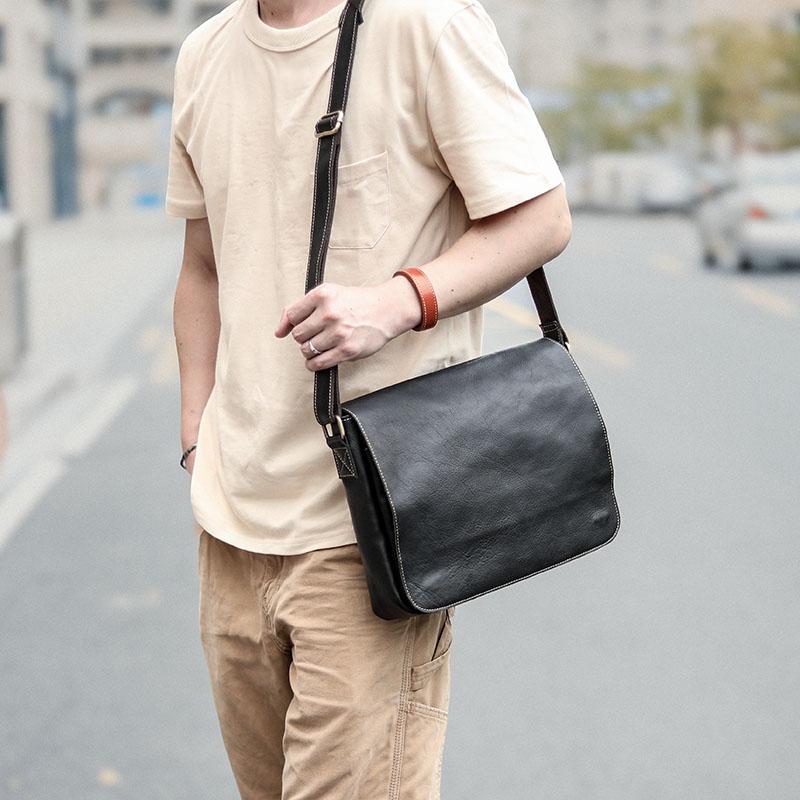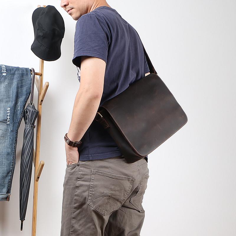 Style: Black Leather Mens Casual 11 inches Courier Bags Messenger Bag Dark Brown Postman Bags For Men