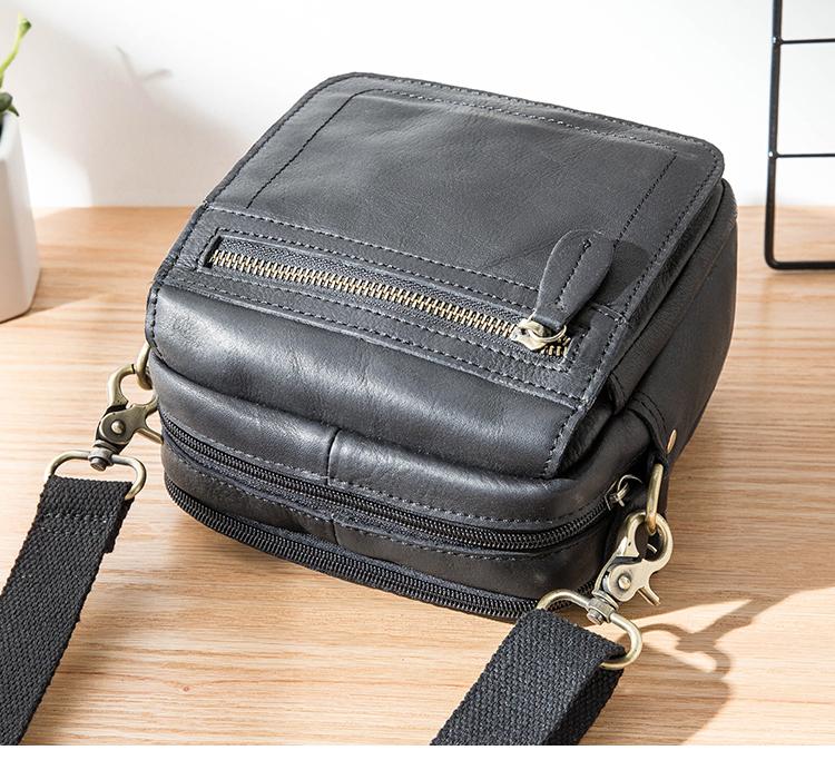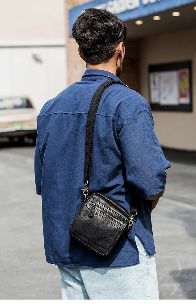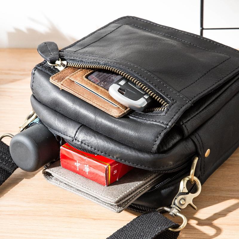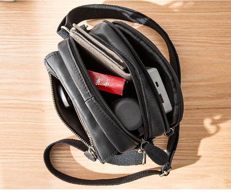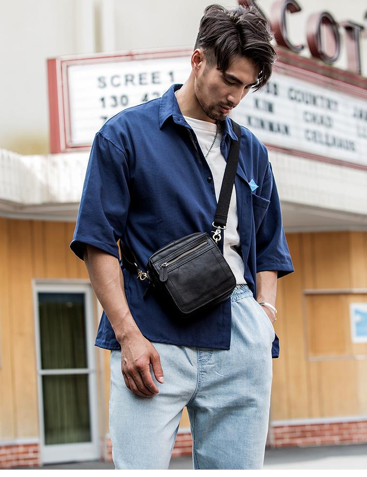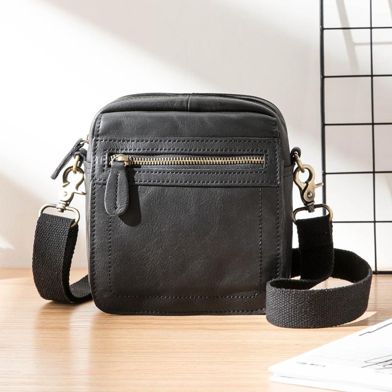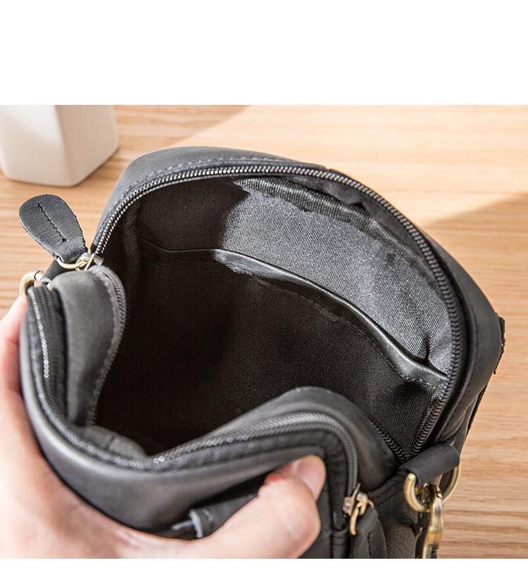 Design: Black Mini Leather Mens Soft Phone Bag Black Messenger Bags Side Bag Sling Bag for Men