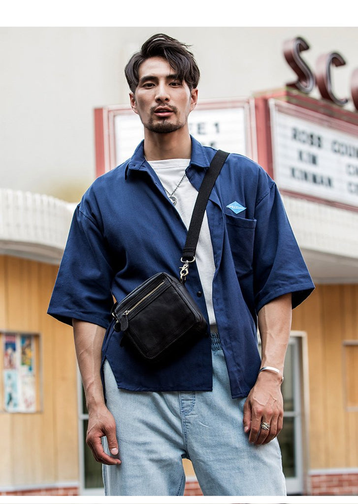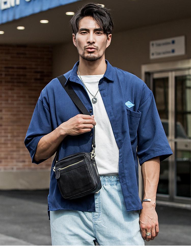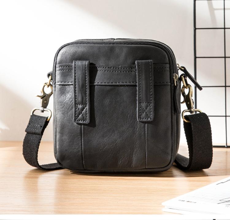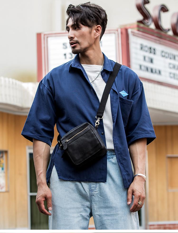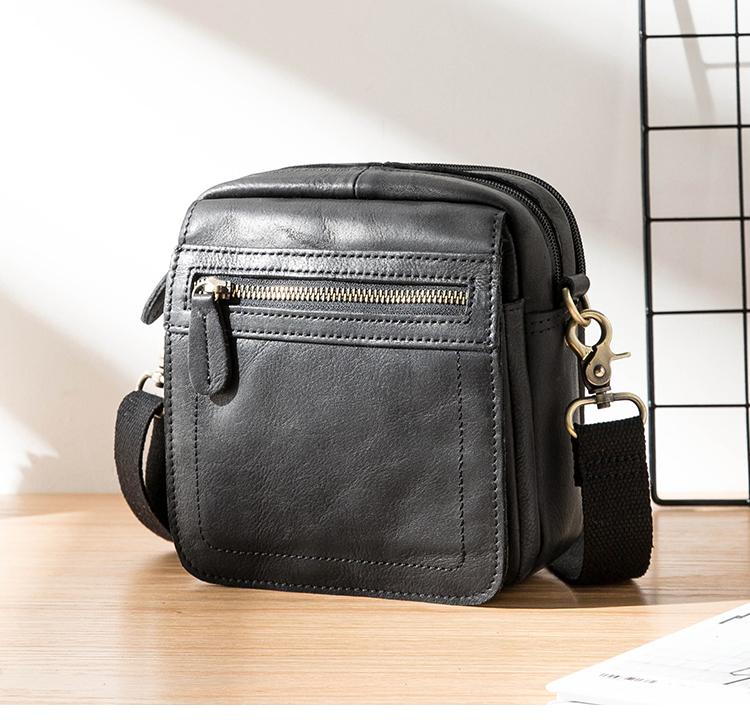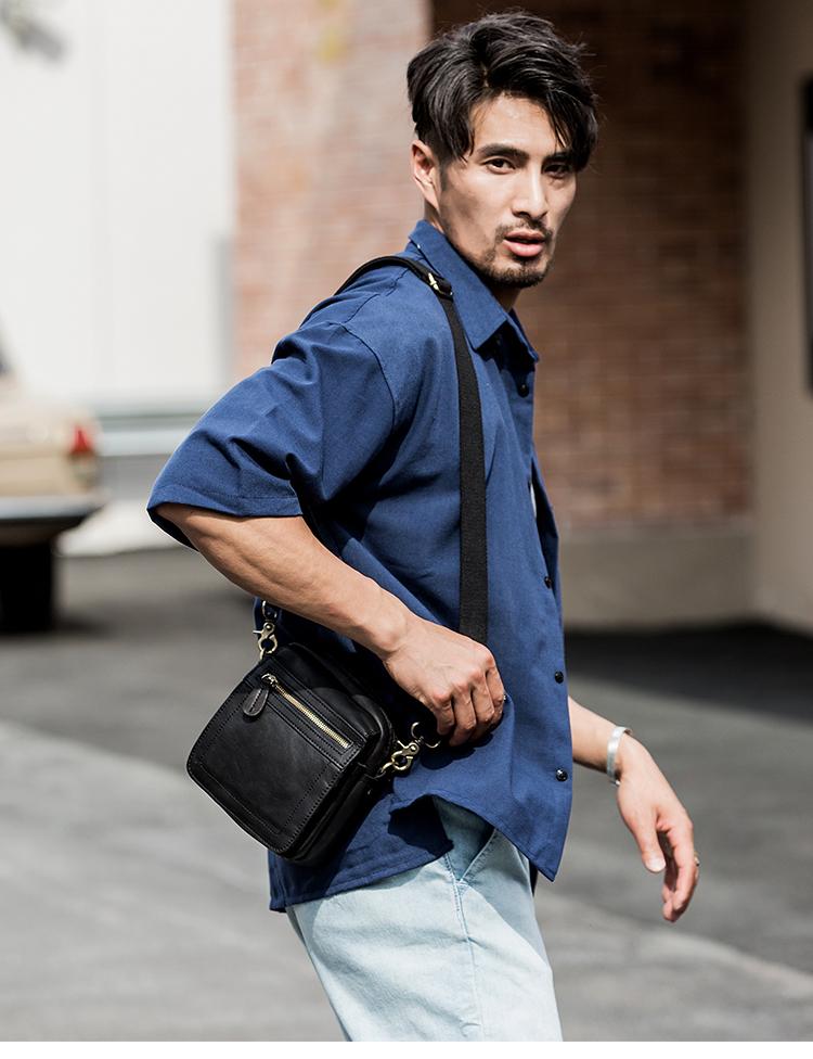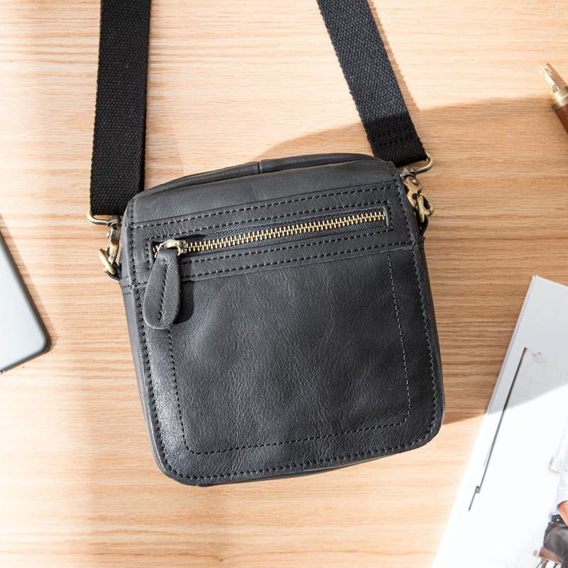 Design: Black Mini Leather Mens Soft Phone Bag Black Messenger Bags Side Bag Sling Bag for Men
