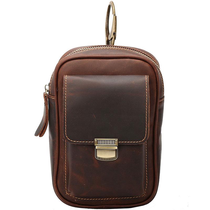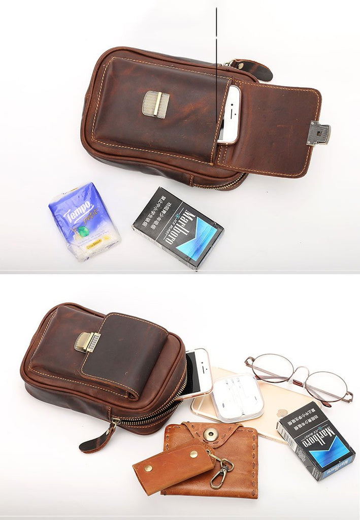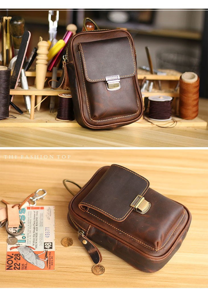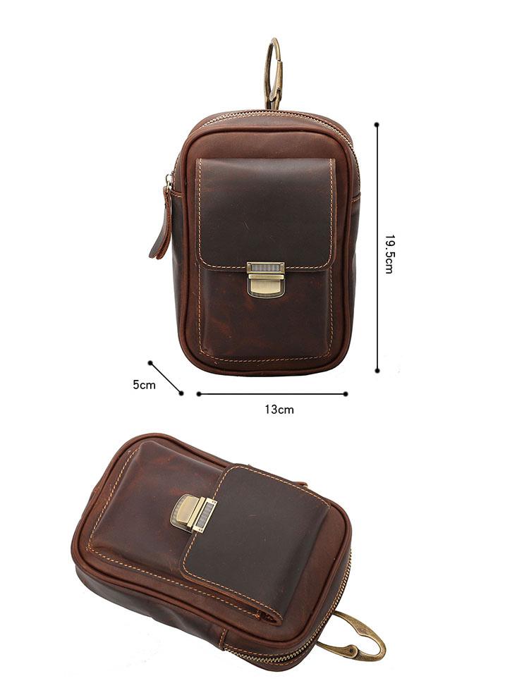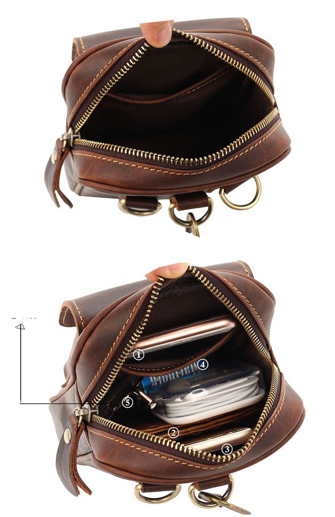 Design: Black Vintage Leather Mens Small Messenger Bag Waist Bag Dark Brown Belt Pouch Bag For Men