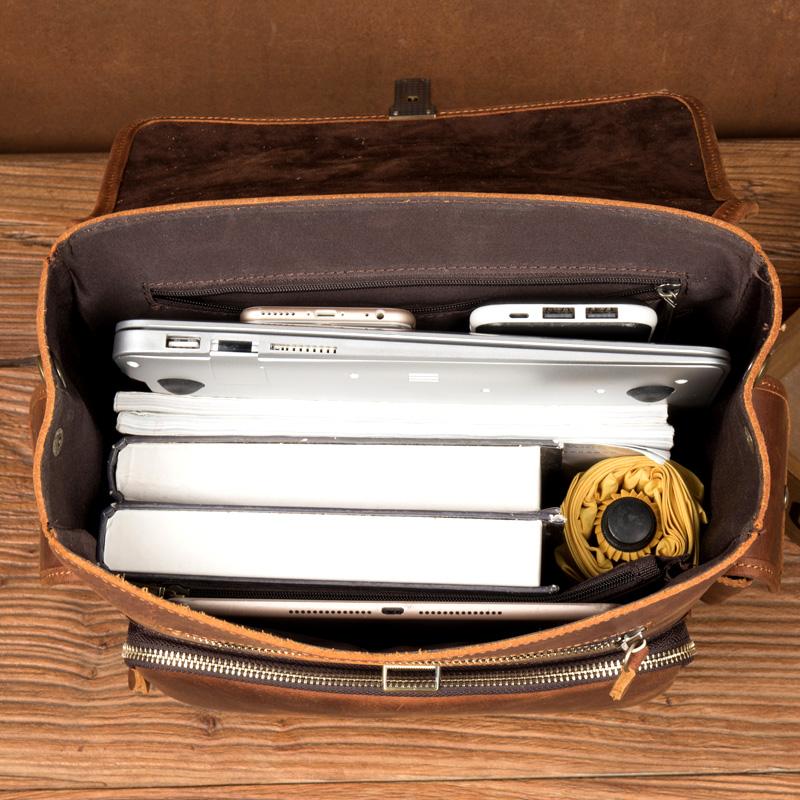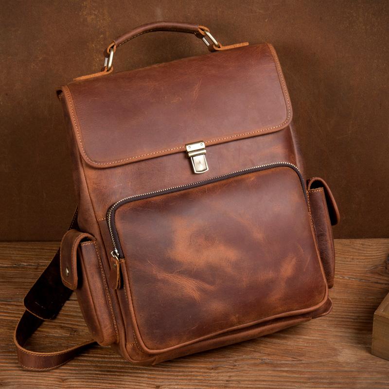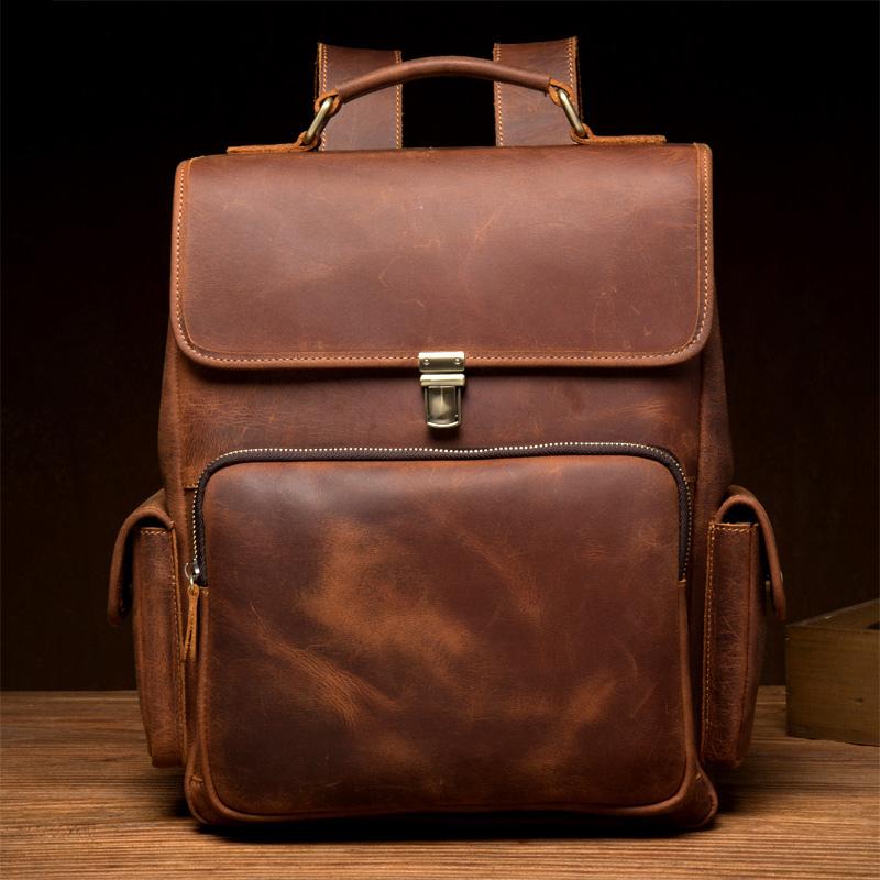Style: Brown Casual Leather Mens 13 inches Travel Backpacks Computer Backpack for Men