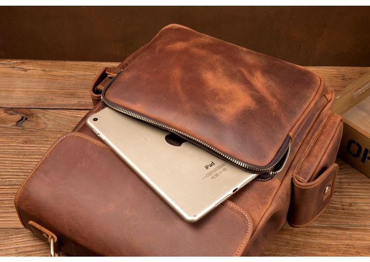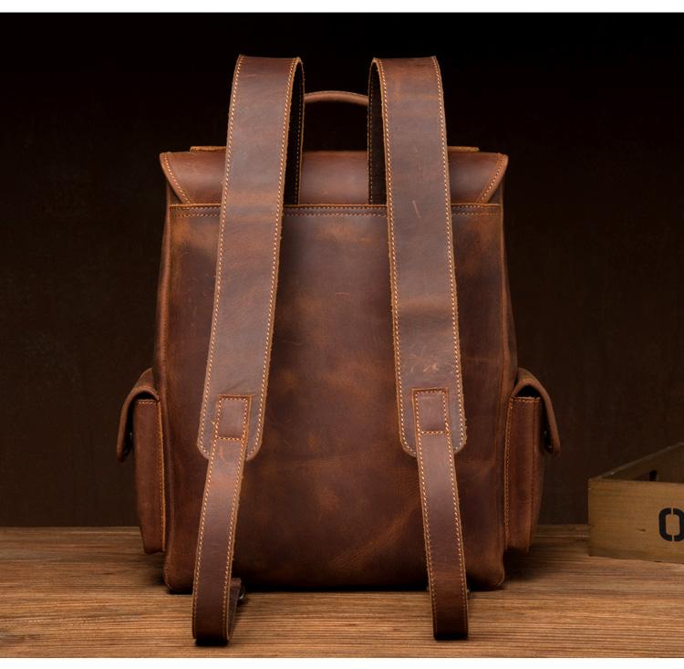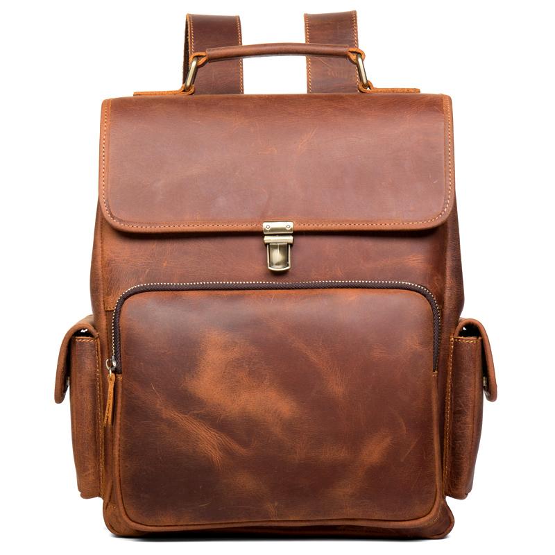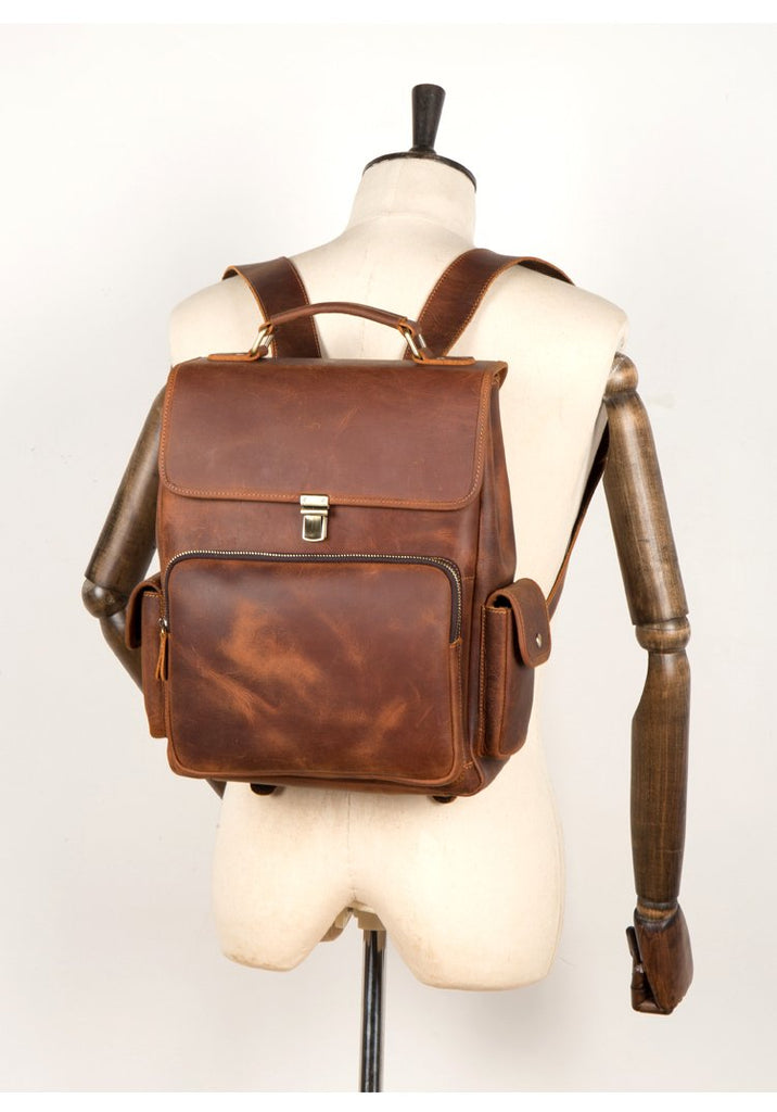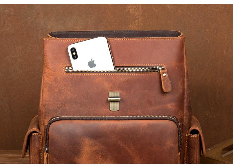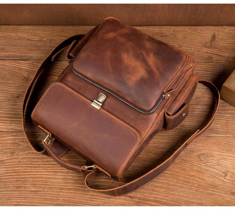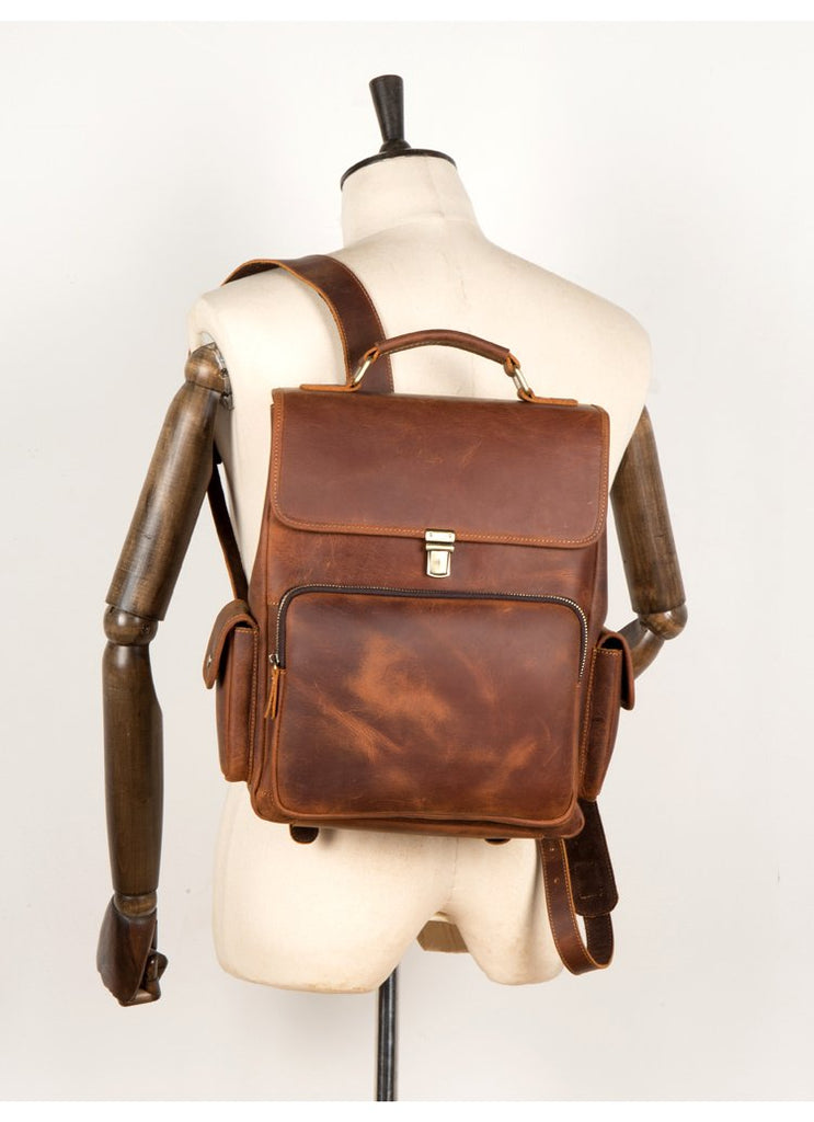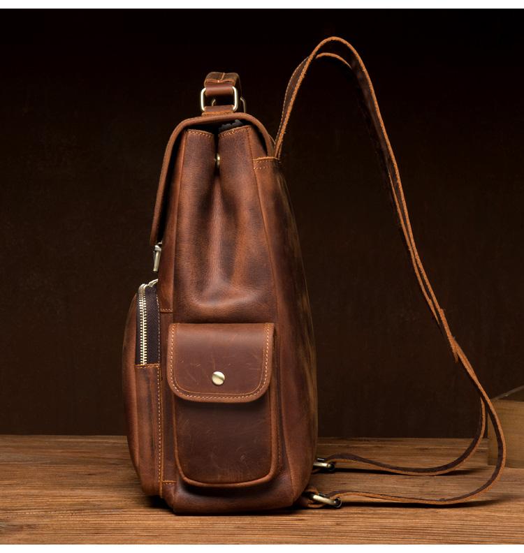 Design: Brown Casual Leather Mens 13 inches Travel Backpacks Computer Backpack for Men
