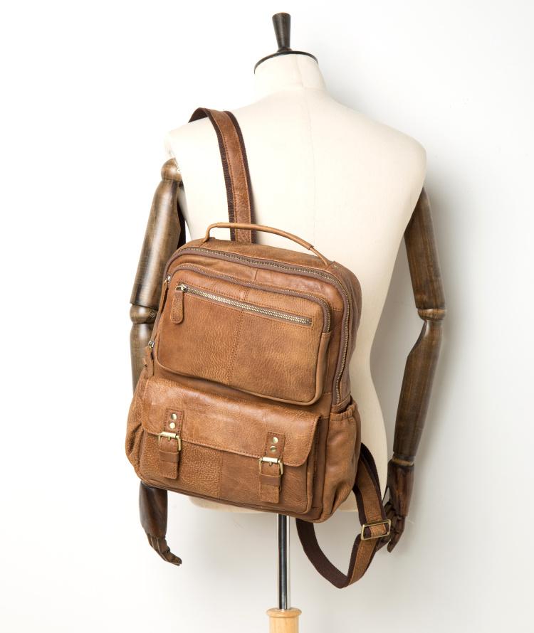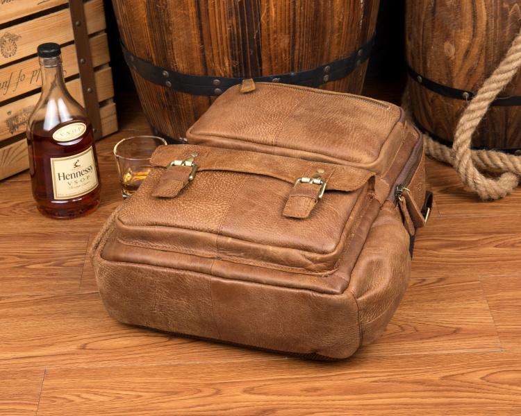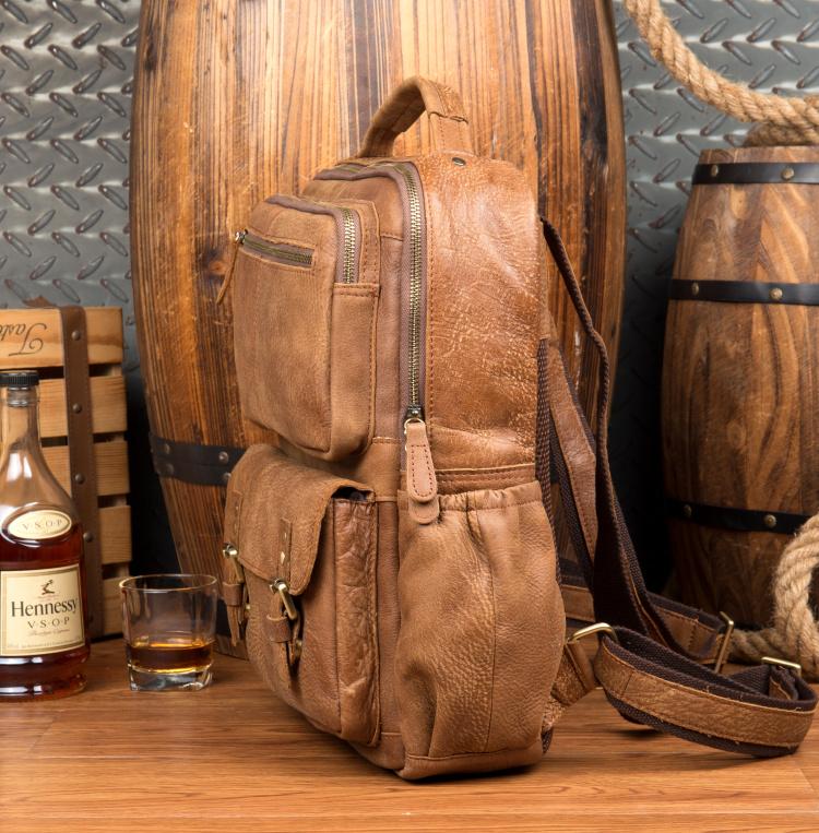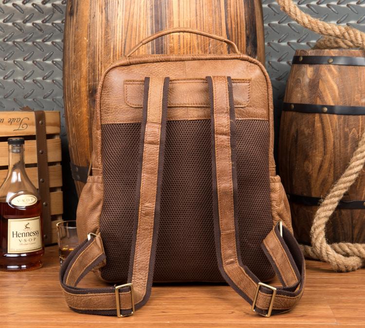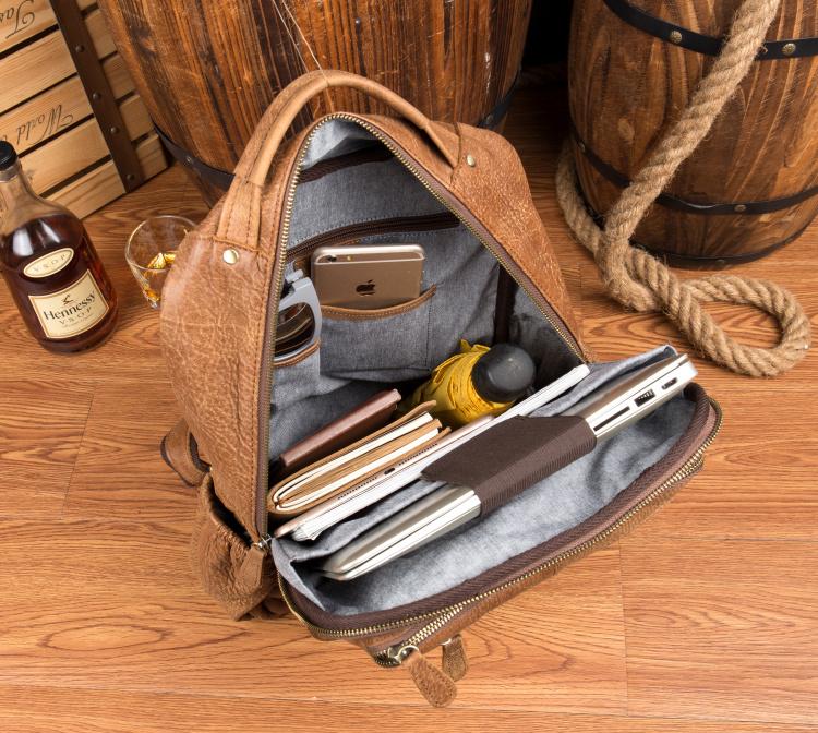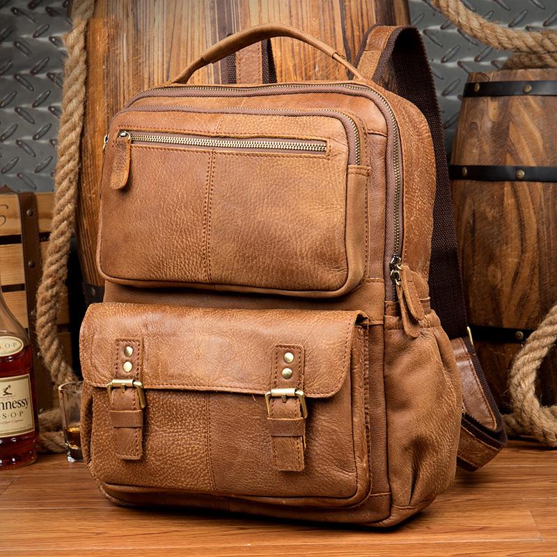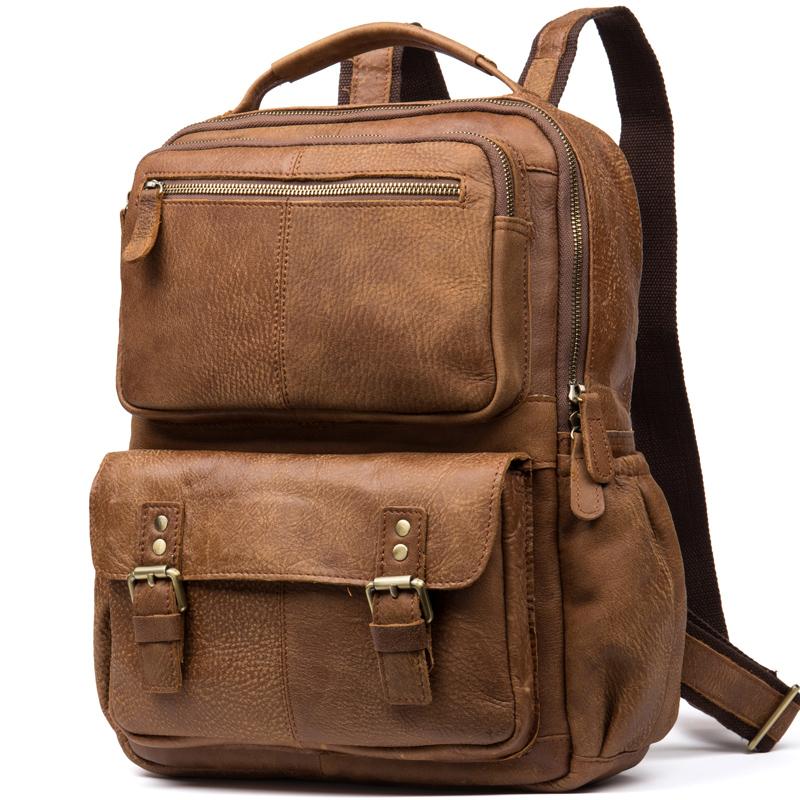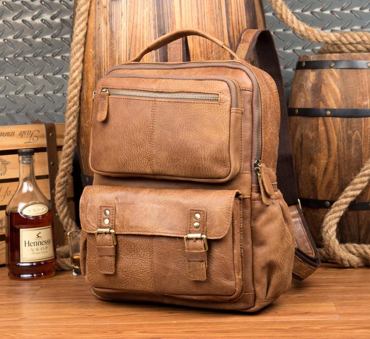 Design: Brown Casual Leather Mens 14 inches Travel Backpacks Computer Backpack for Men
