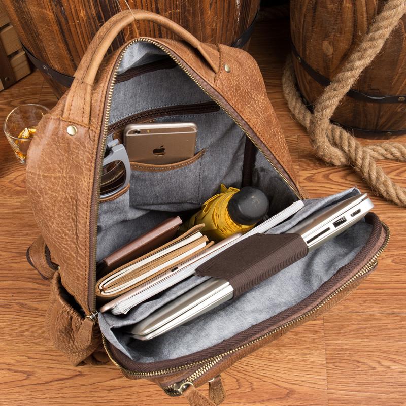 Style: Brown Casual Leather Mens 14 inches Travel Backpacks Computer Backpack for Men
