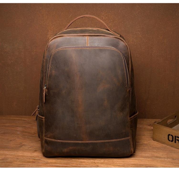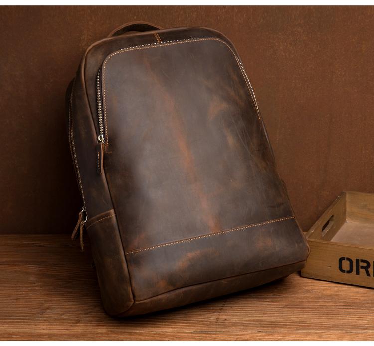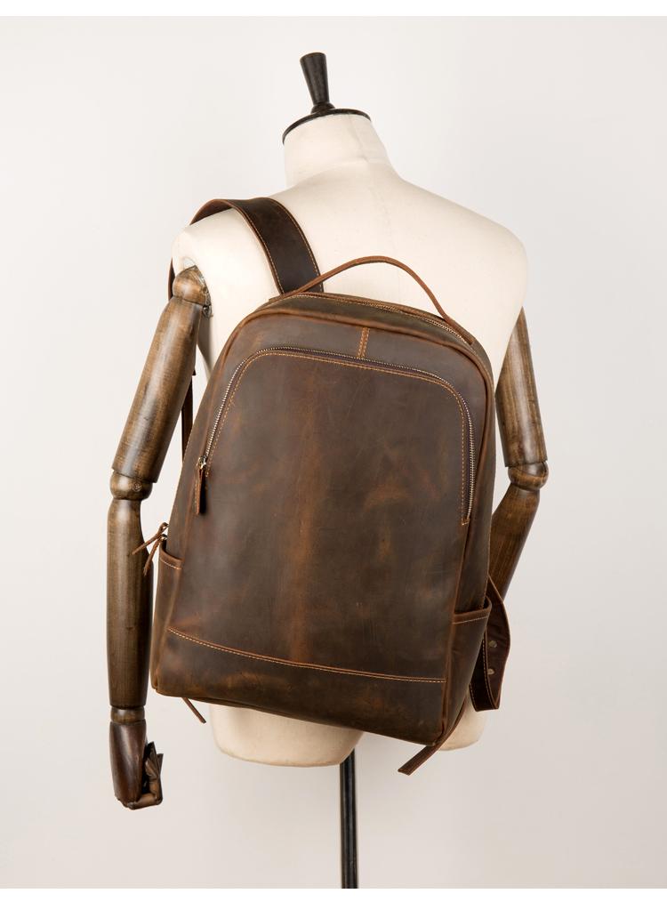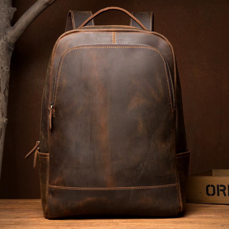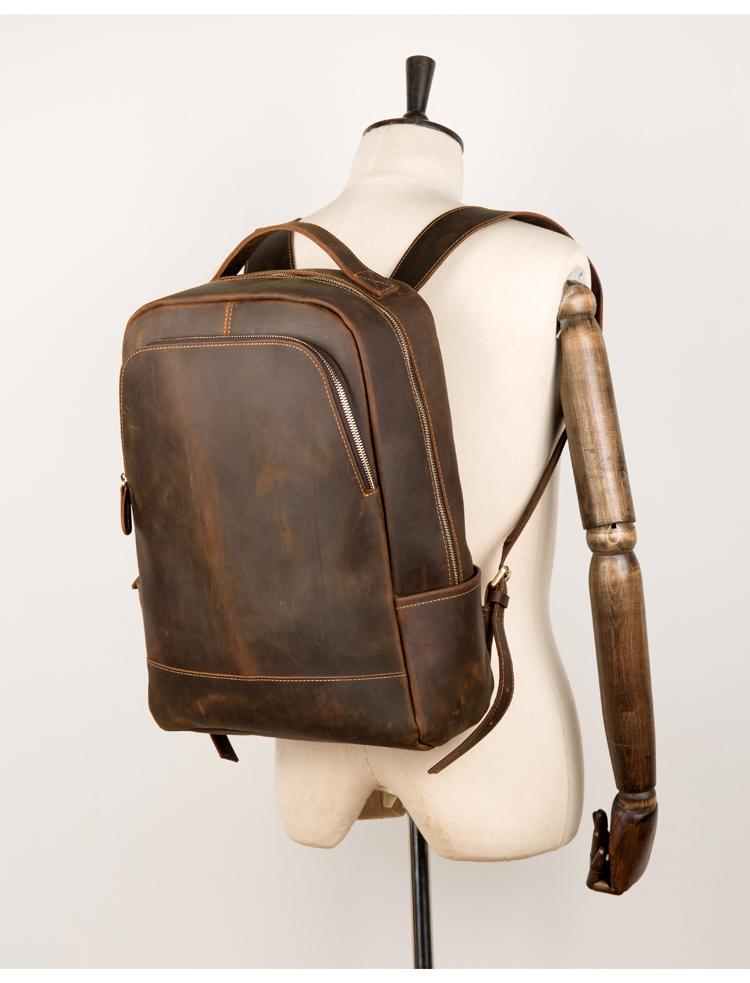 Design: Brown Casual Mens Leather 16-inch Large Backpack Black Travel Backpacks Computer Backpacks for men