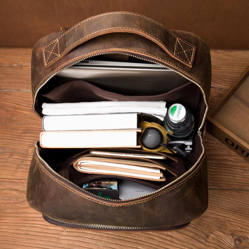 Style: Brown Casual Mens Leather 16-inch Large Backpack Black Travel Backpacks Computer Backpacks for men