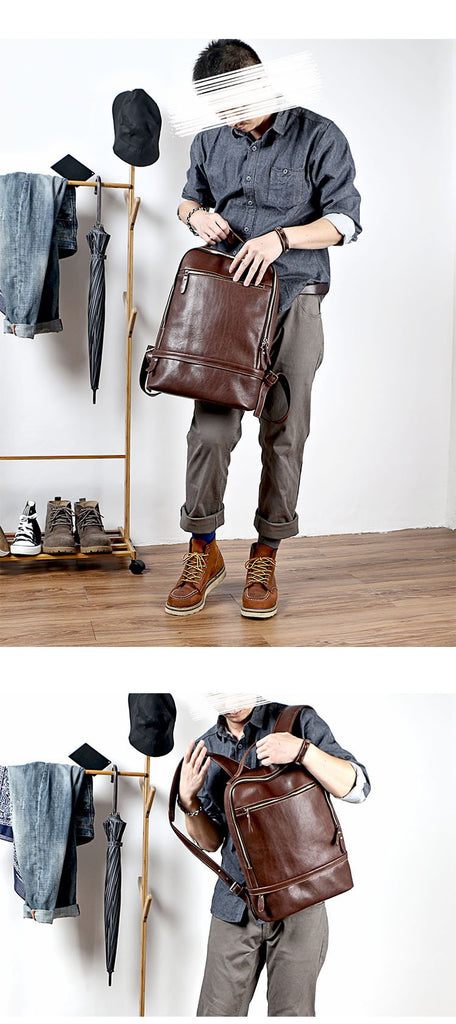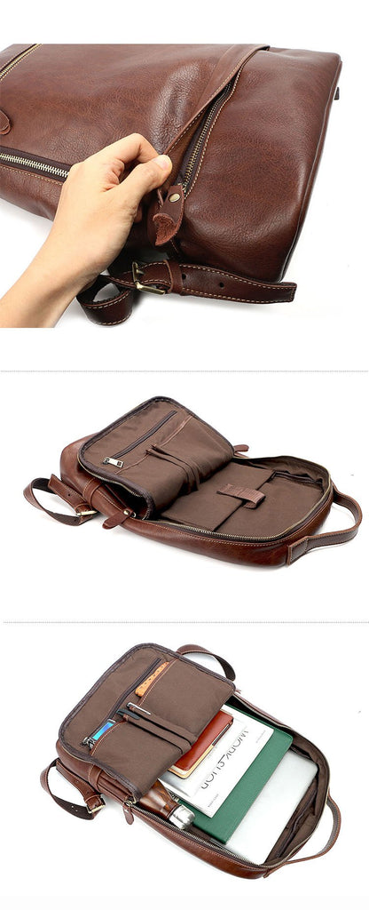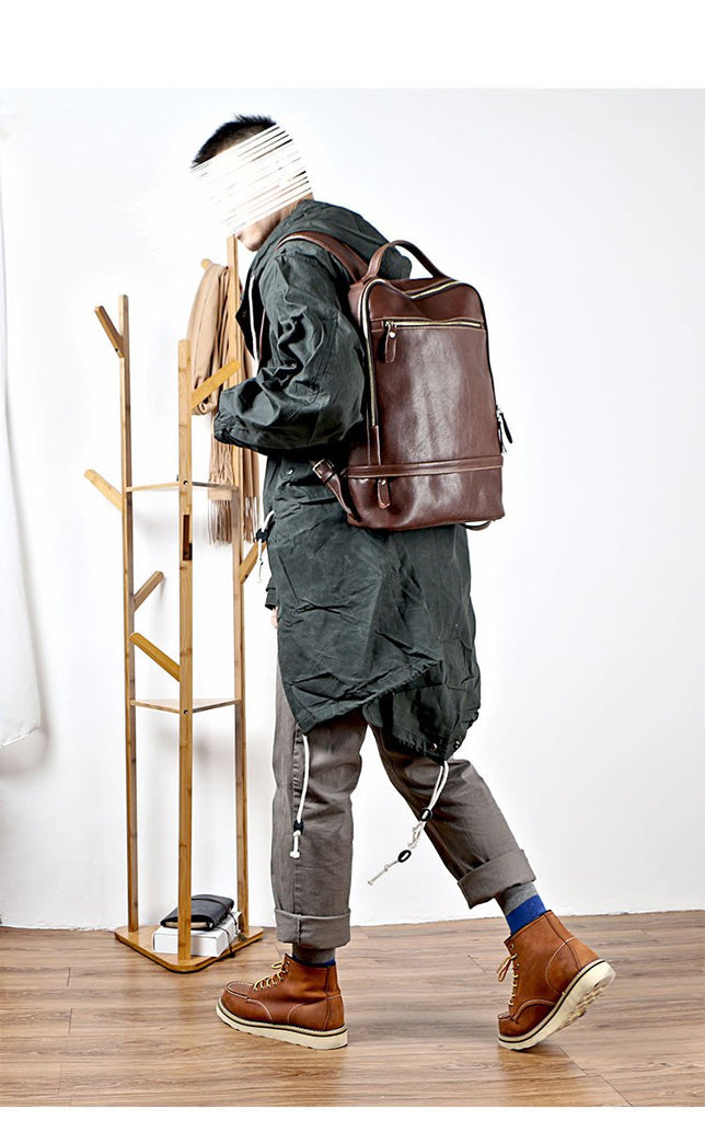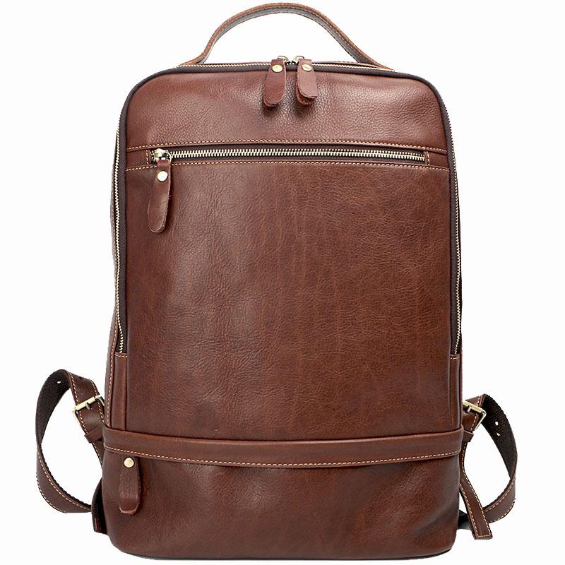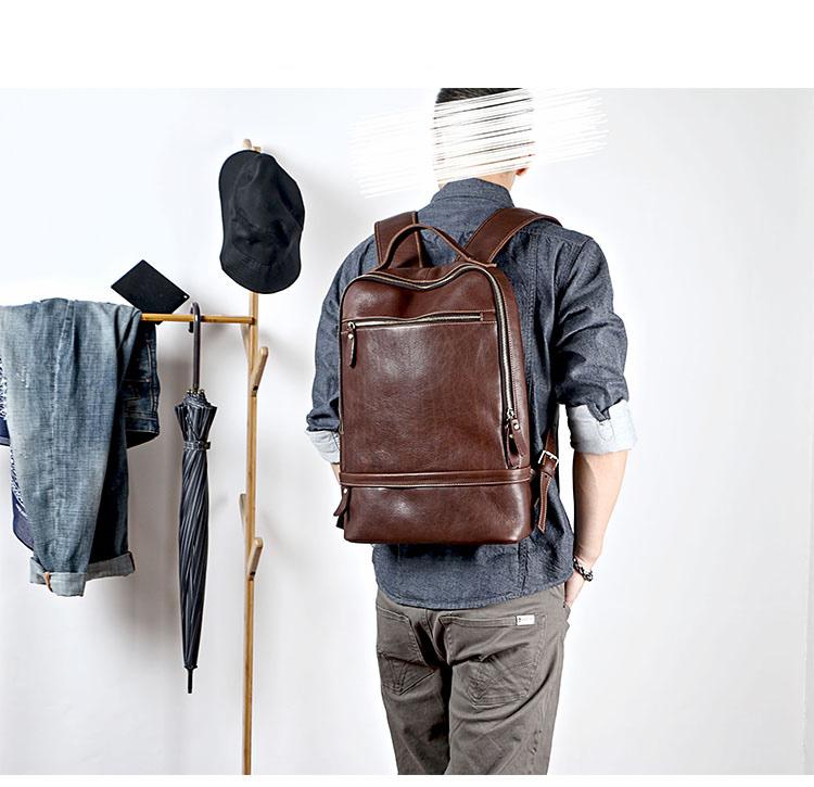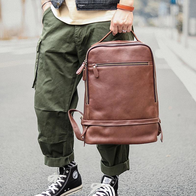 Design: Brown Cool Leather Mens Backpack College Bag Handbag Computer Bag For Men