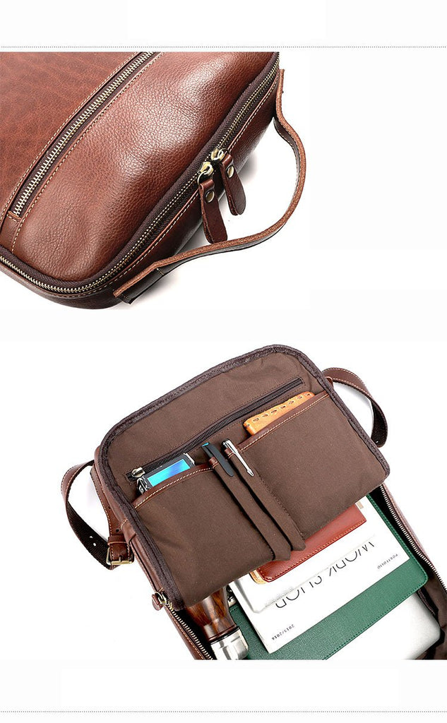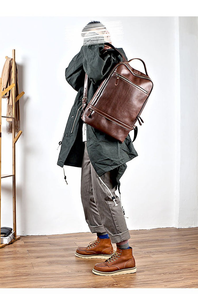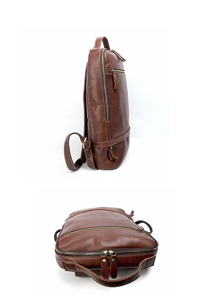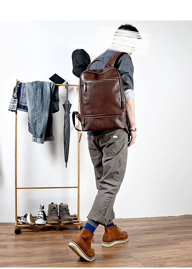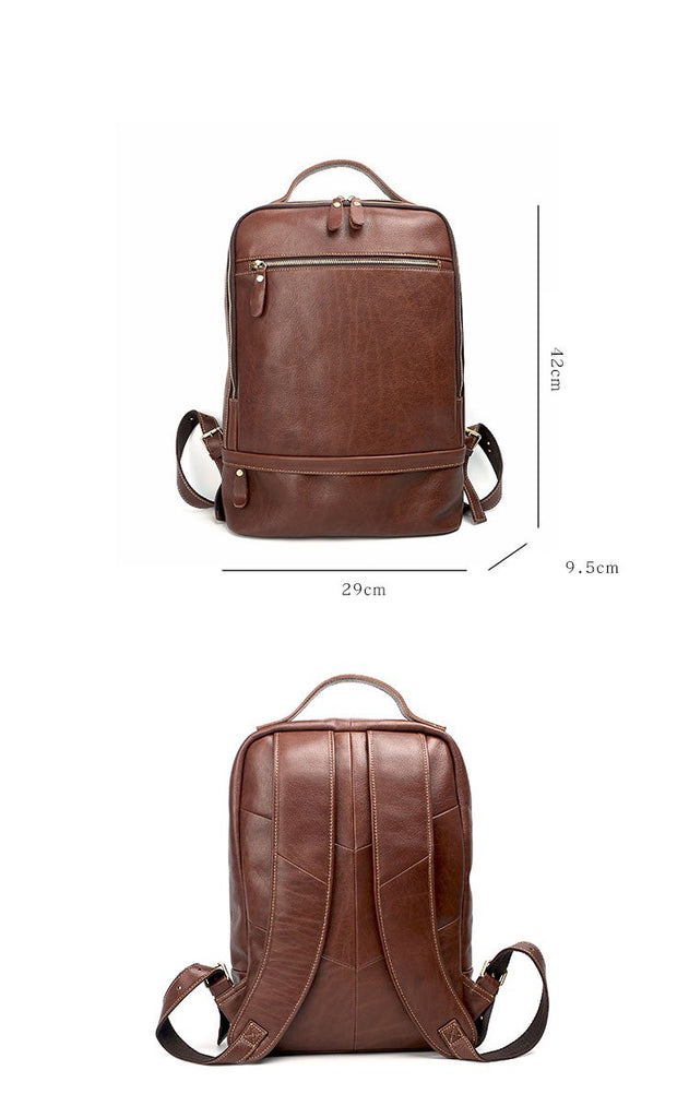 Design: Brown Cool Leather Mens Backpack College Bag Handbag Computer Bag For Men