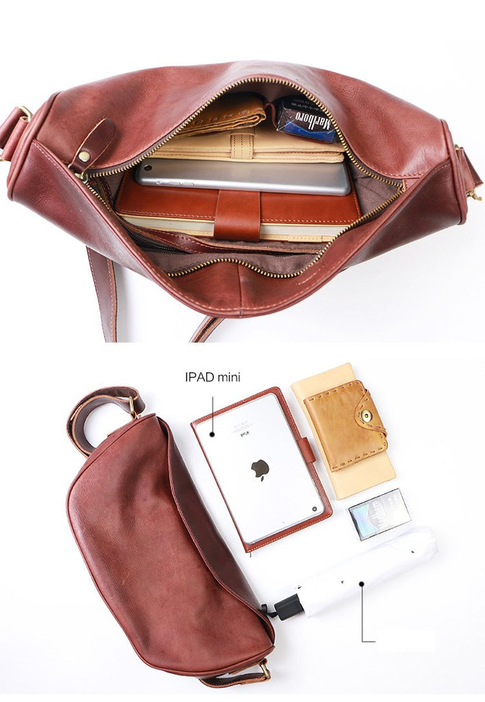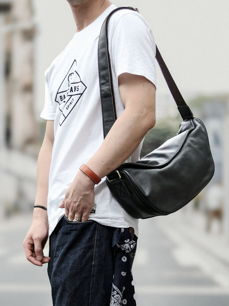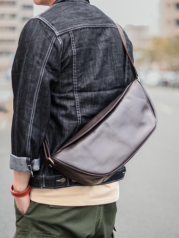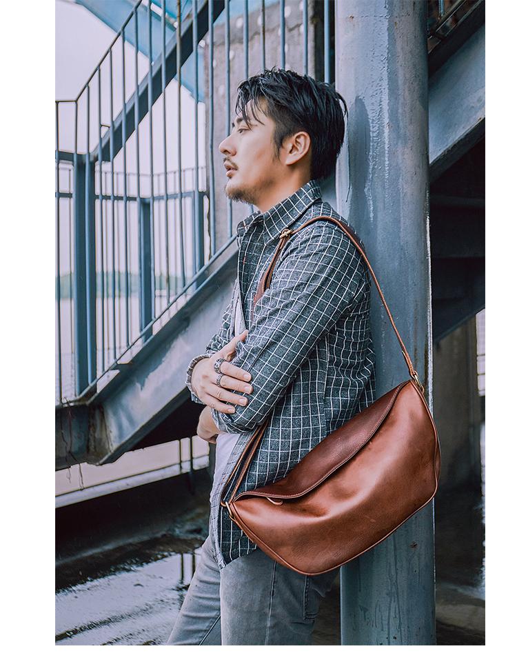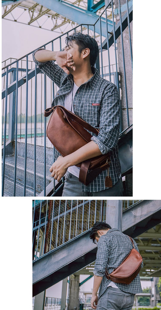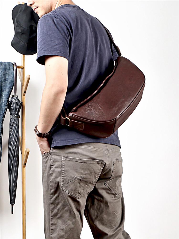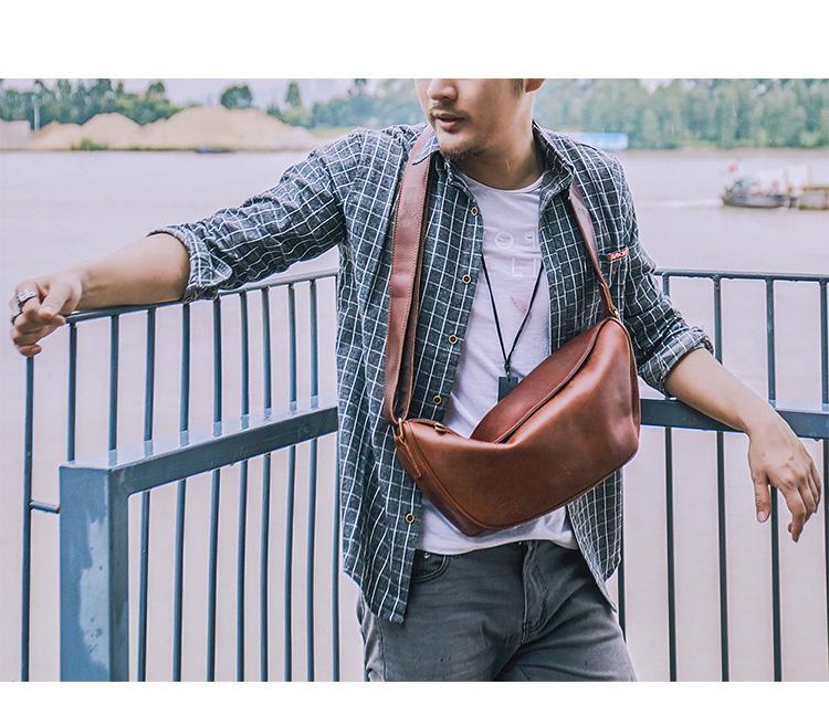 Style: Brown Cool Leather Mens Shoulder Bag Chest Bag Black Sling Pack For Men