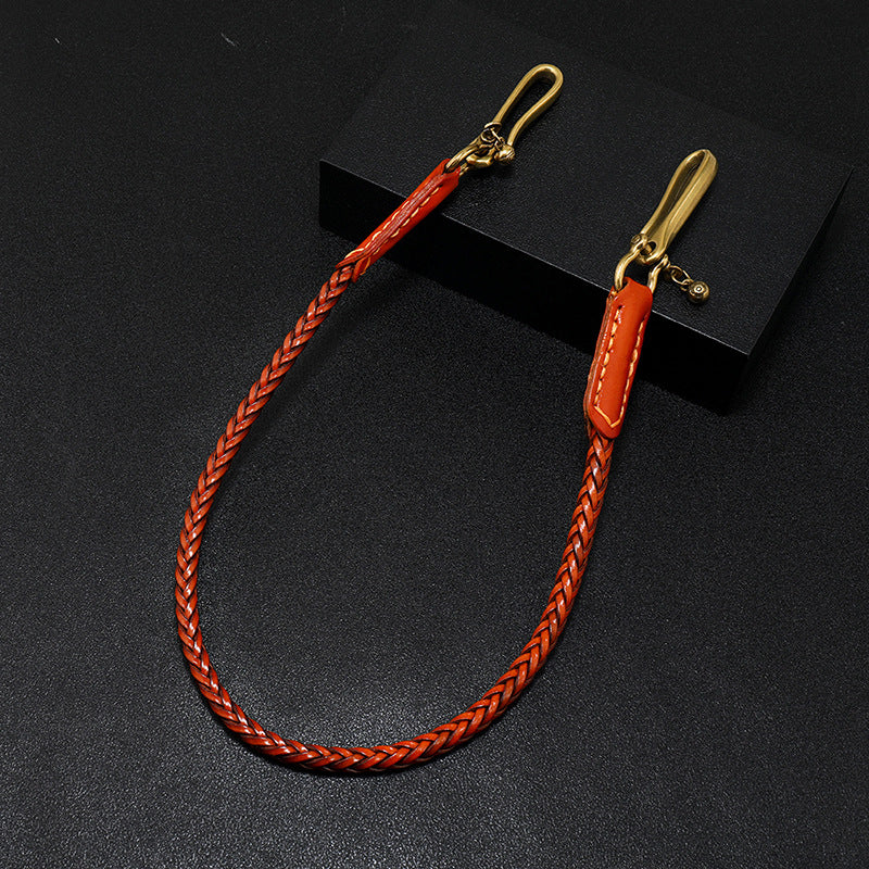 Brown Leather Braided Biker Wallet Chains Handmade Leather Pants Chain For Men