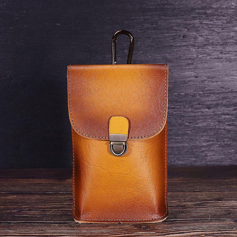 Design: Brown Leather Cell Phone Mens Belt Pouches Waist Bags BELT BAG Mini Bag For MenOverview: