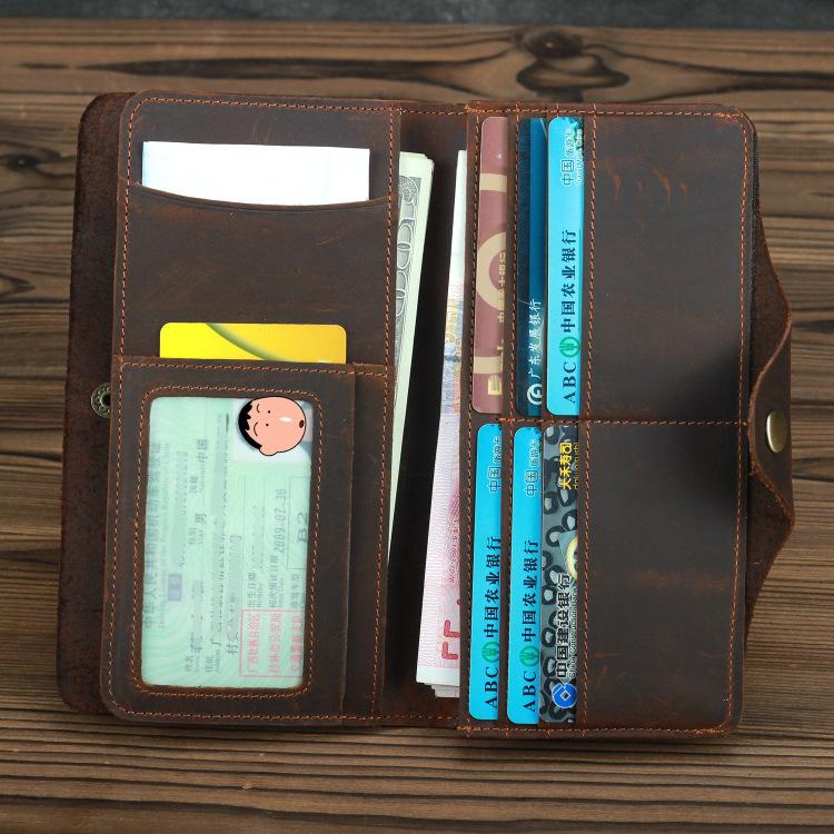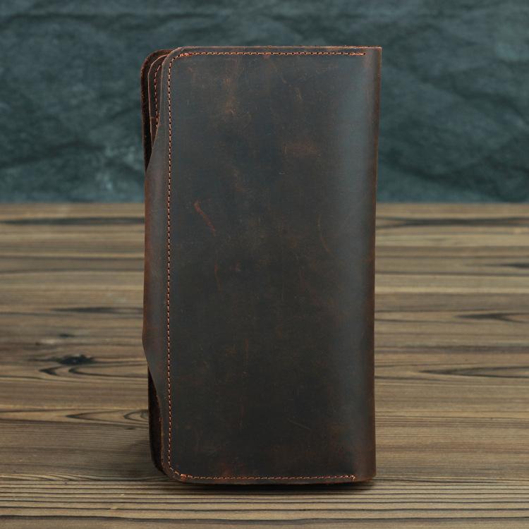 Style: Brown Leather Long Wallet for Men Business Bifold Long Wallet Brown Multi-Card Wallet For Men