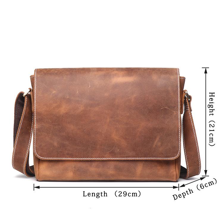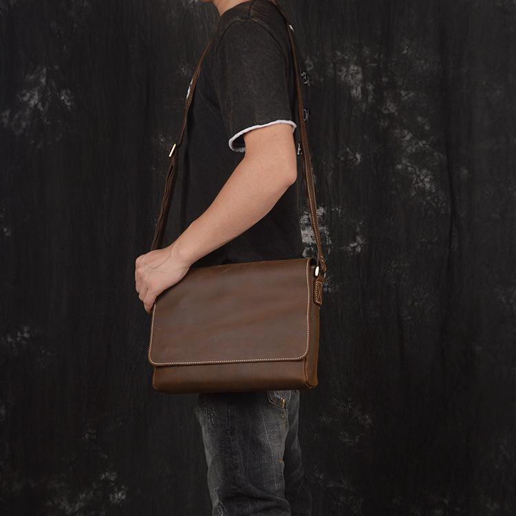 Design: Brown Leather Mens 10 inches Large Laptop Side Bag Dark Brown Messenger Bag Postman Bag For MenOverview: