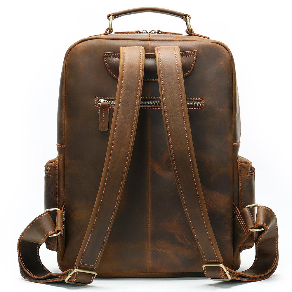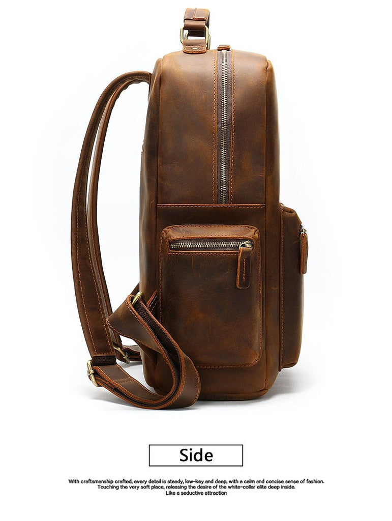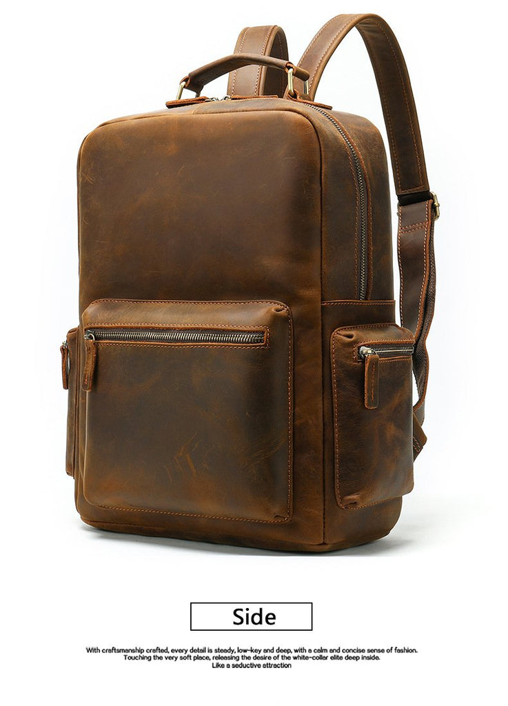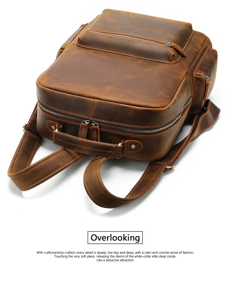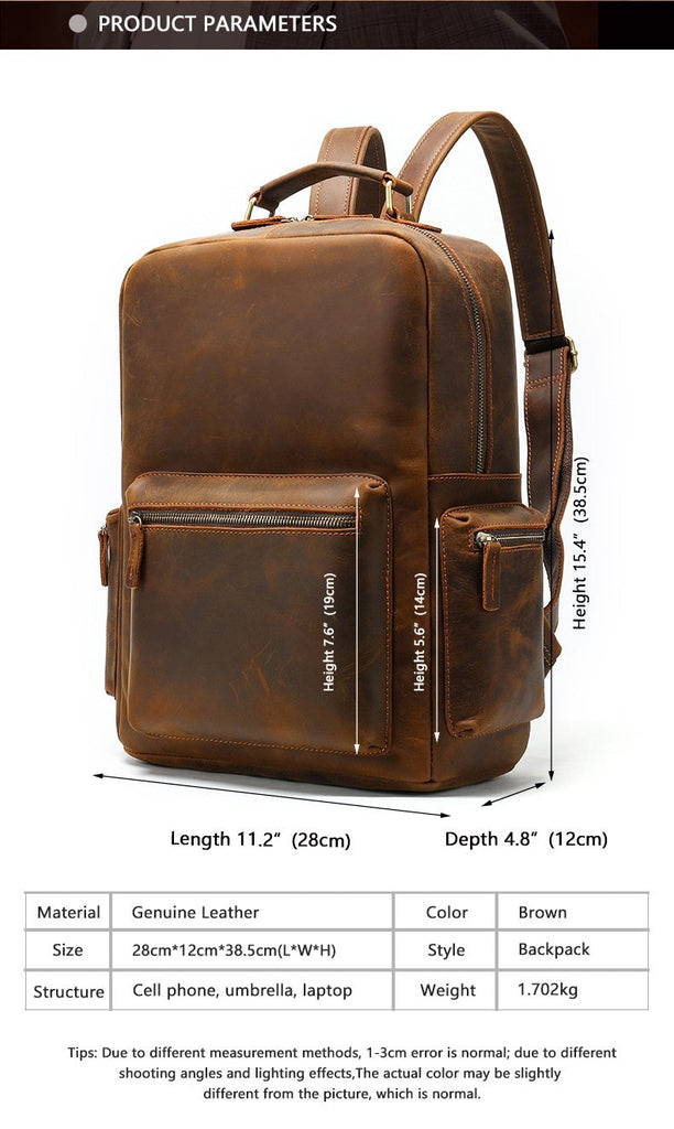 Design: Brown Leather Men's 14 inches Large Computer Backpack Large Black Travel Backpack Brown Large Hiking Backpack For MenOverview: