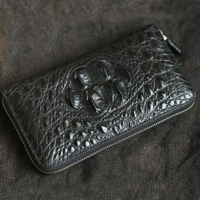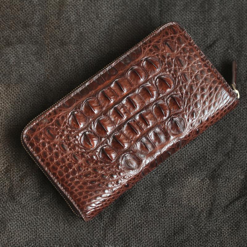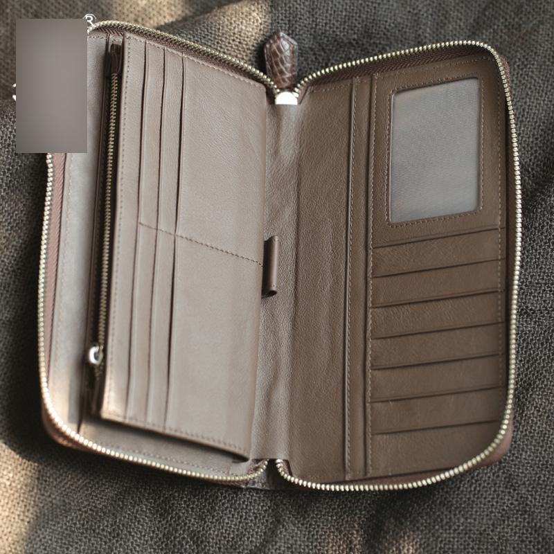 Design: Brown Real Crocodile Leather Mens Black Multi-Card Wallet Clutch Bag For Men