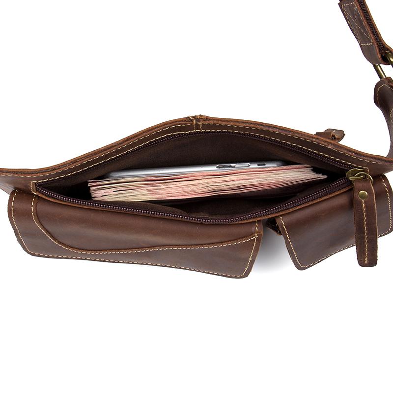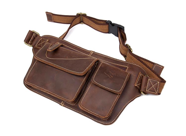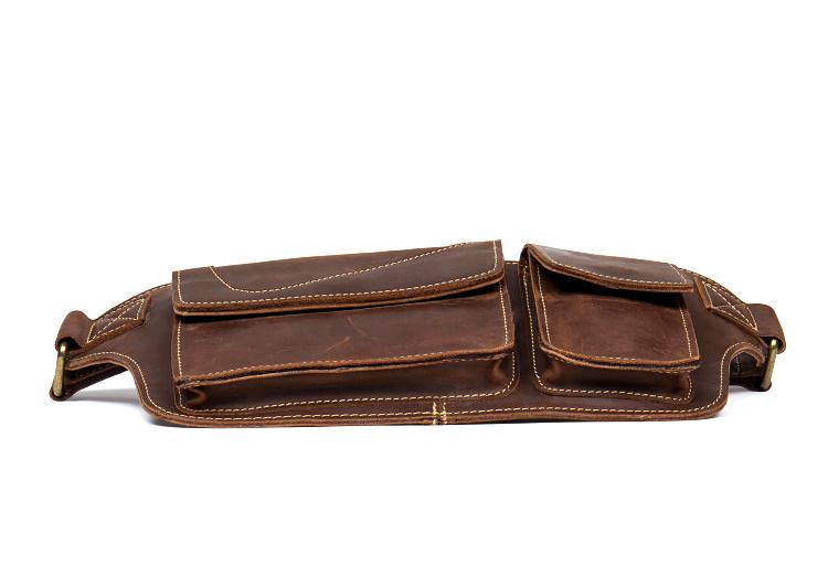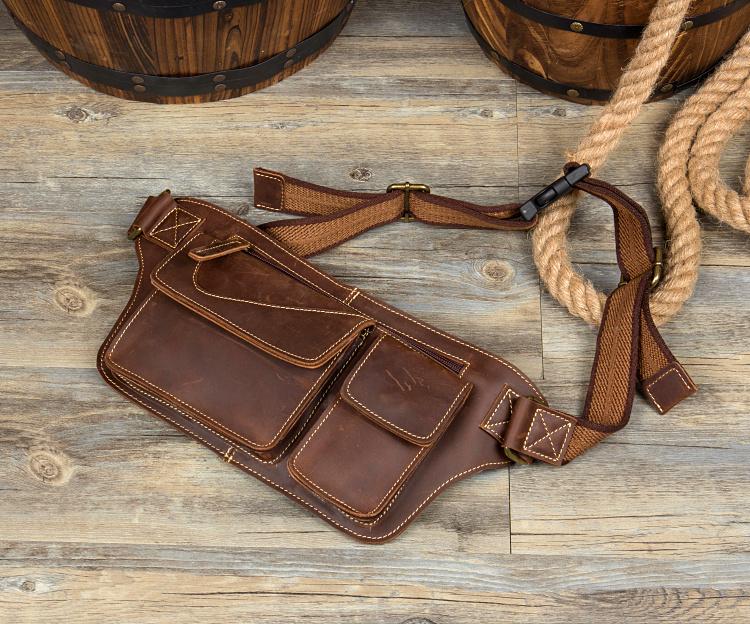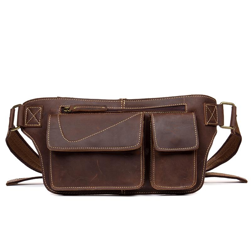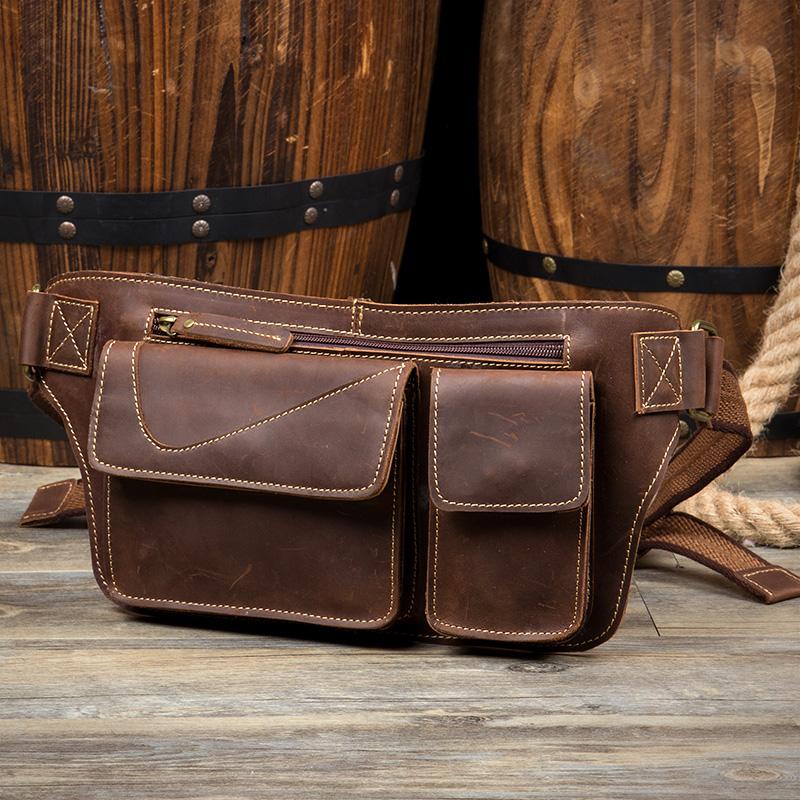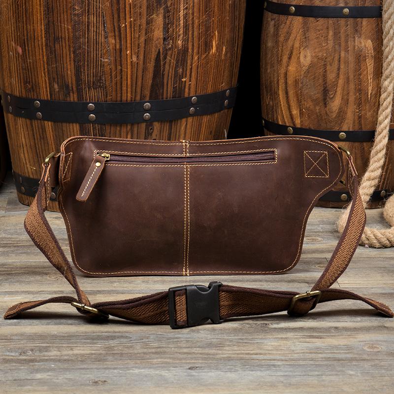 Design: Brown Vintage Leather Fanny Pack Mens Waist Bag Hip Pack Belt Bags Bumbags for Men