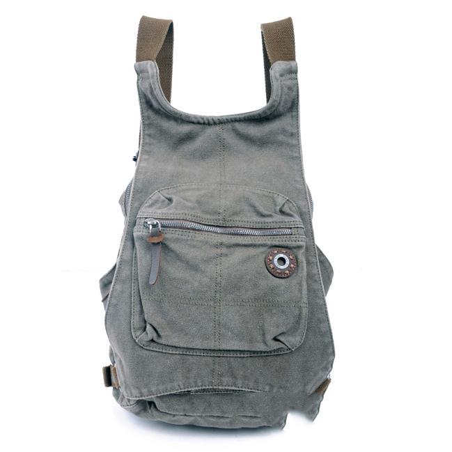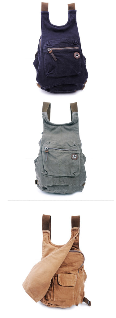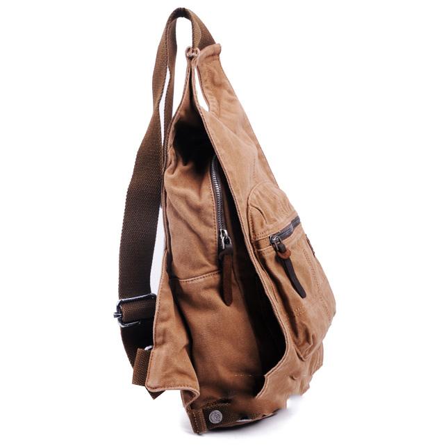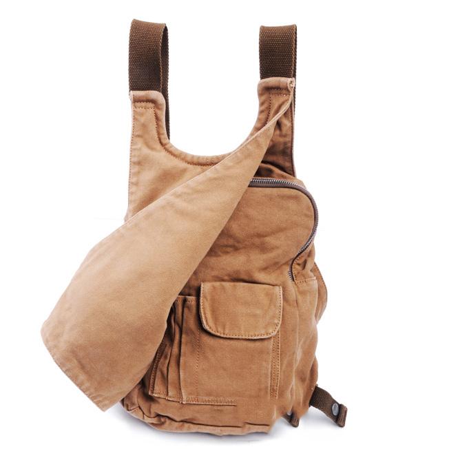 Design: Canvas Black Mens Hiking Bag 10 inches Khaki Chest Bag Side Bag Bucket One Shoulder Backpack For Men