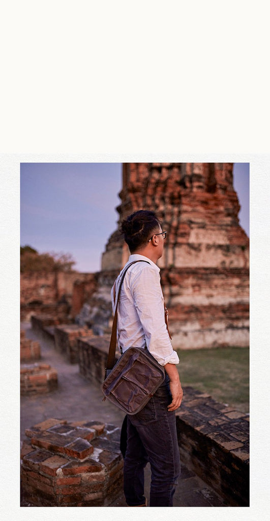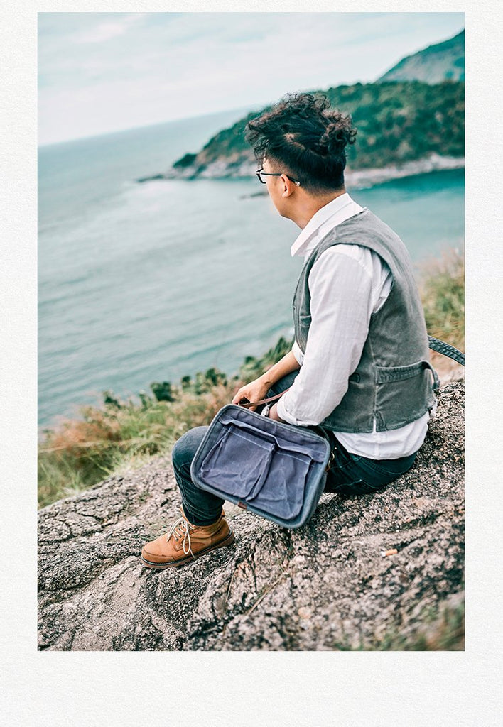 Design: Canvas Cool Mens 10 inches Square Side Bag Canvas Messenger Bags Canvas Travel Courier Bag for Men Women