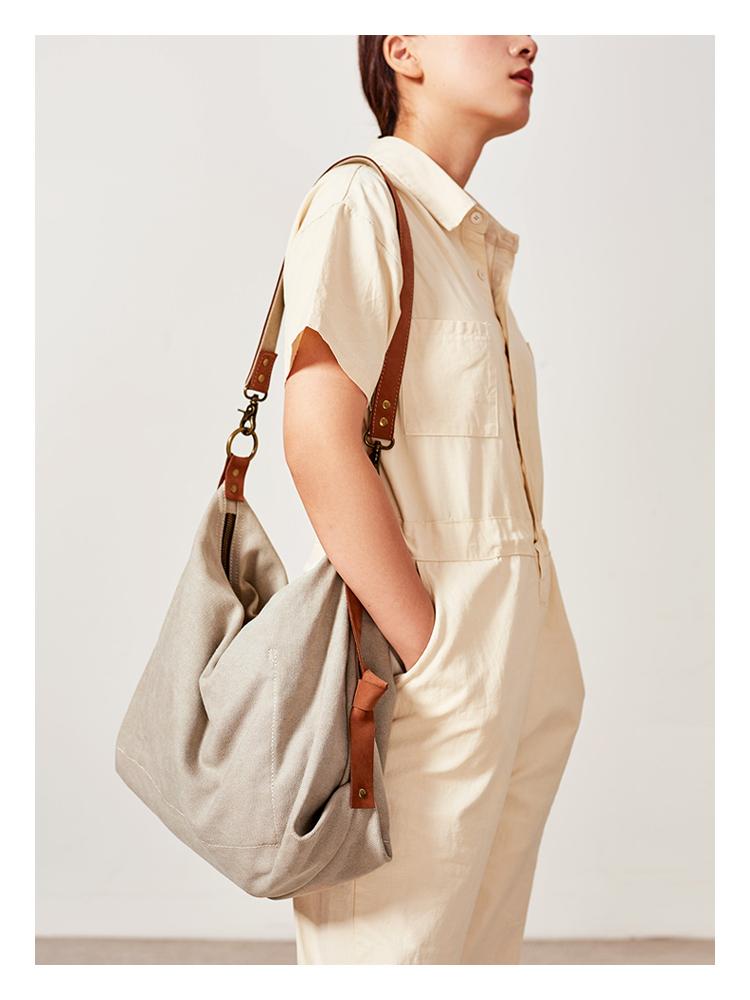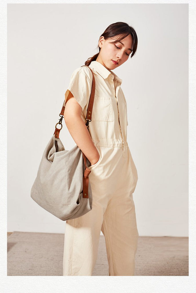 Style: Canvas Cool Mens Shoulder Bag Light Gray Canvas Handbag Canvas Tote Bag for Men Women