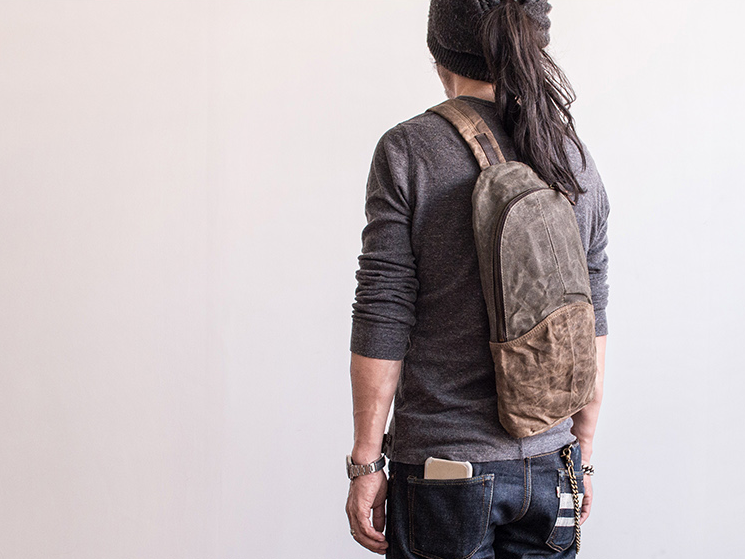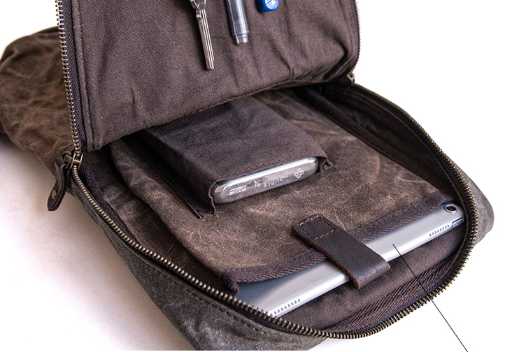 Design: Canvas Leather Mens Cool Chest Bag Sling Bag Crossbody Bag Travel Bag Hiking Bag for men