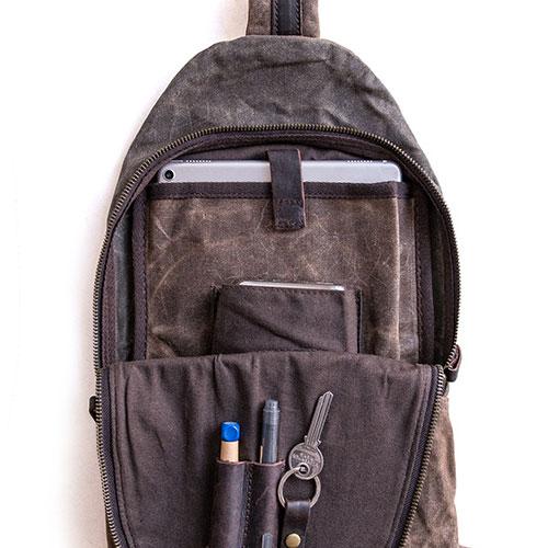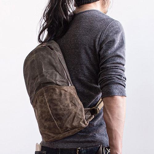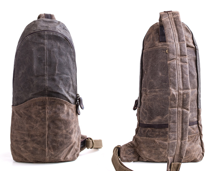 Style: Canvas Leather Mens Cool Chest Bag Sling Bag Crossbody Bag Travel Bag Hiking Bag for men