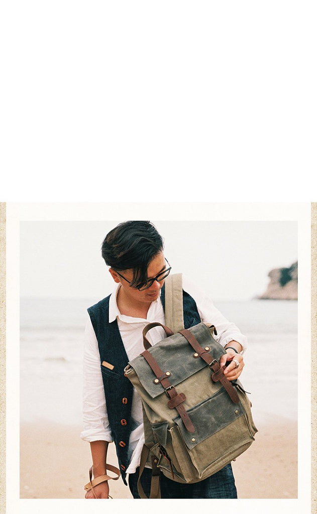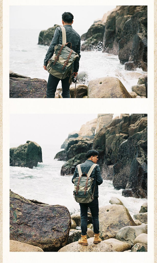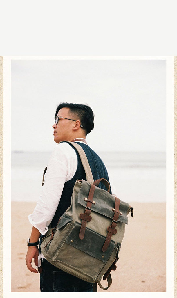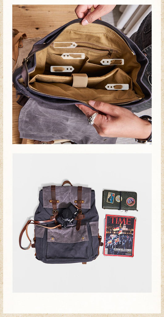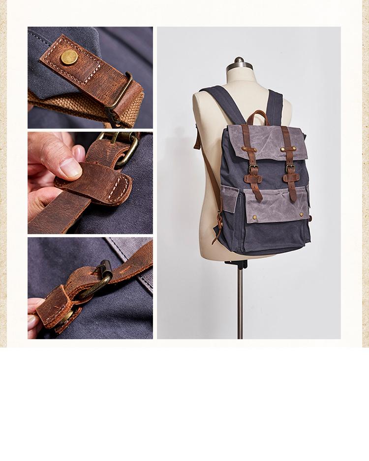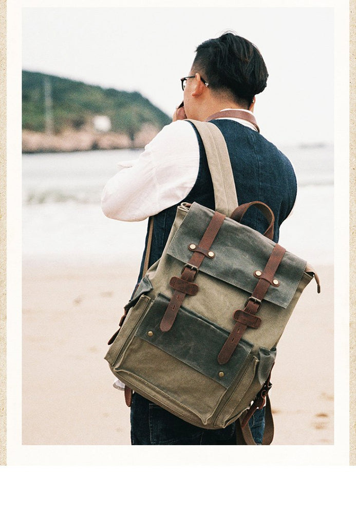 Design: Canvas Leather Mens Womens Backpack 15 inches Messenger Backpack Satchel Bag Canvas School Backpack for Men Women