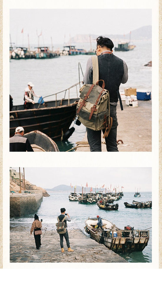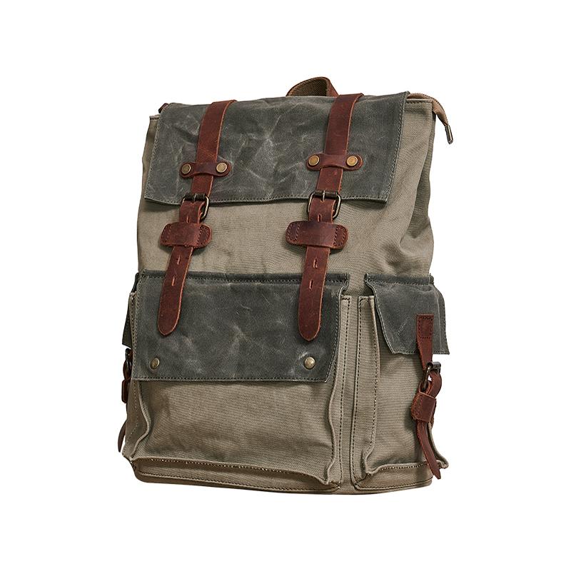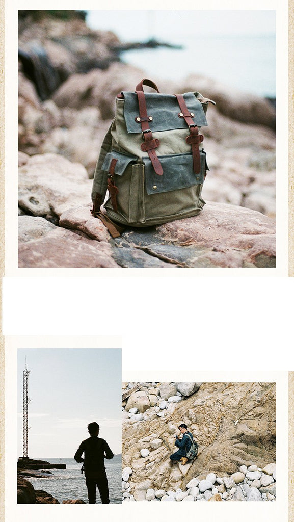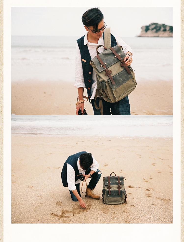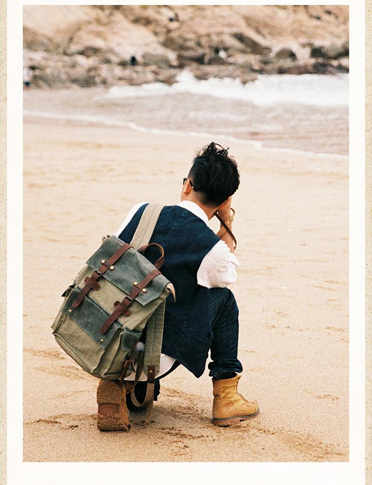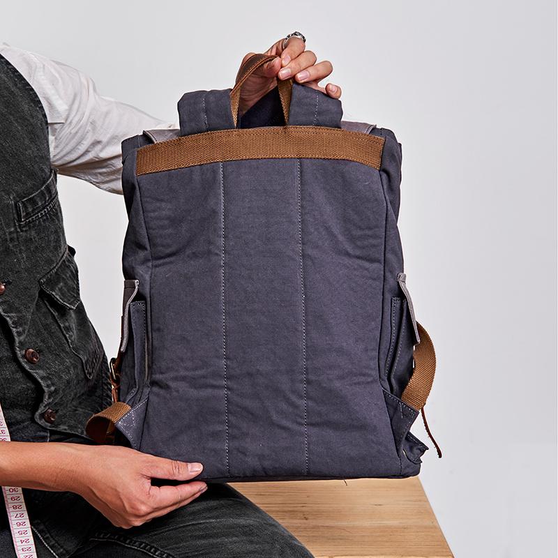 Design: Canvas Leather Mens Womens Backpack 15 inches Messenger Backpack Satchel Bag Canvas School Backpack for Men Women