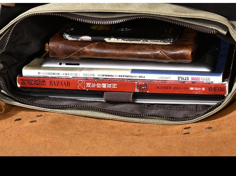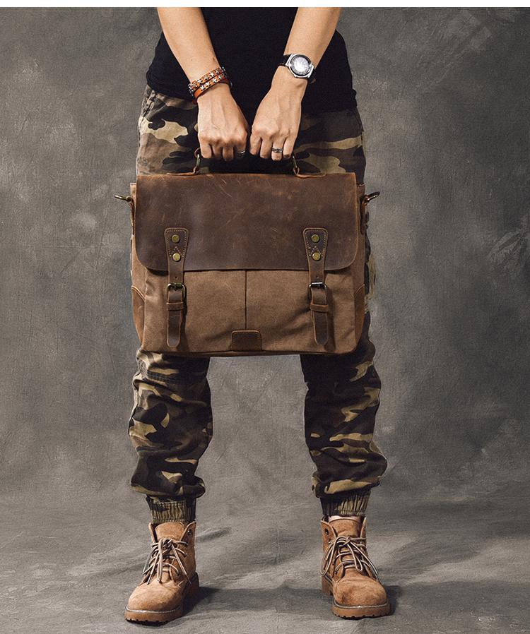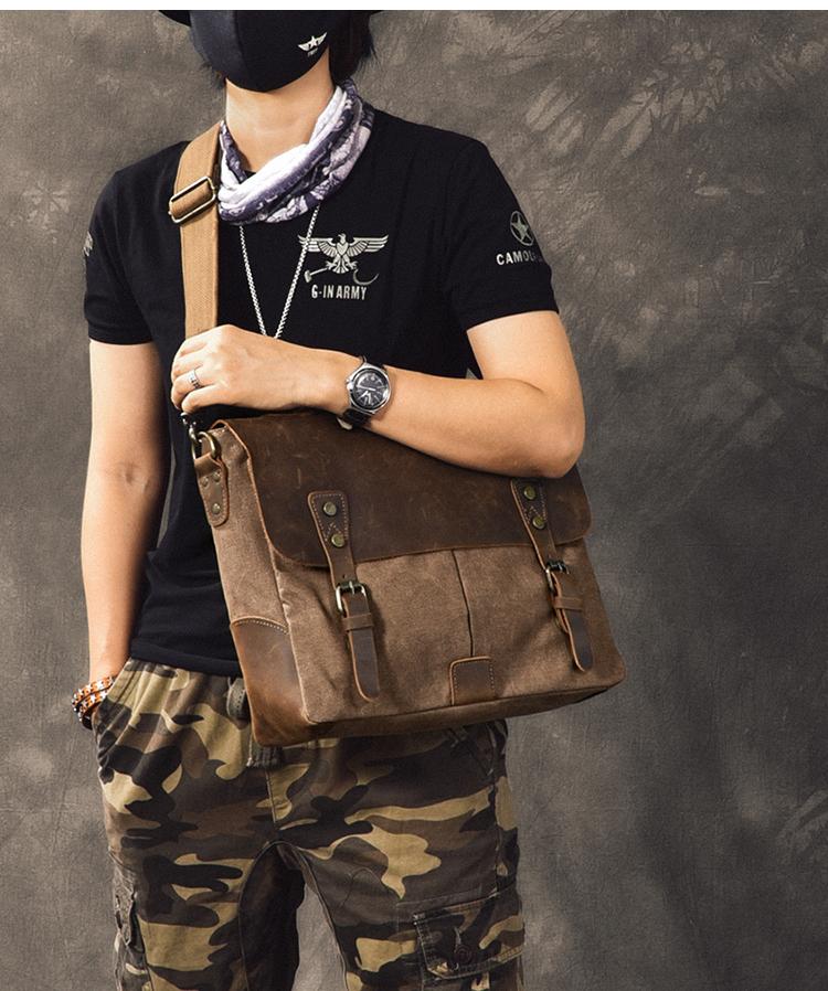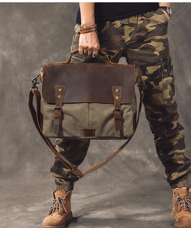 Design: Canvas Leather Mens Womens Green Briefcase Side Bag Brown Messenger Bag Shoulder Bag For Men