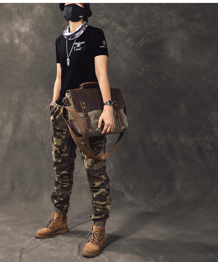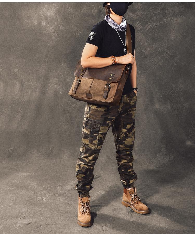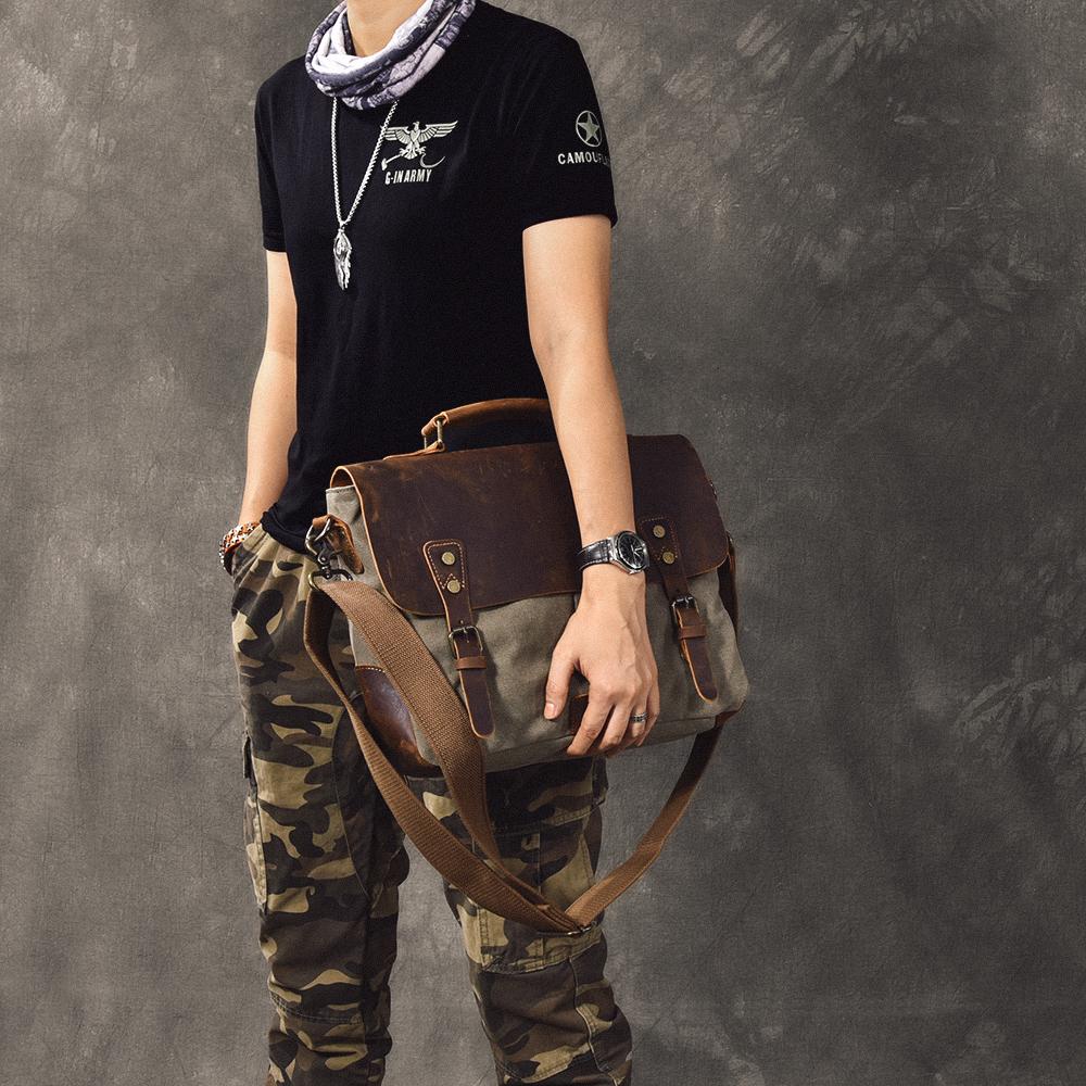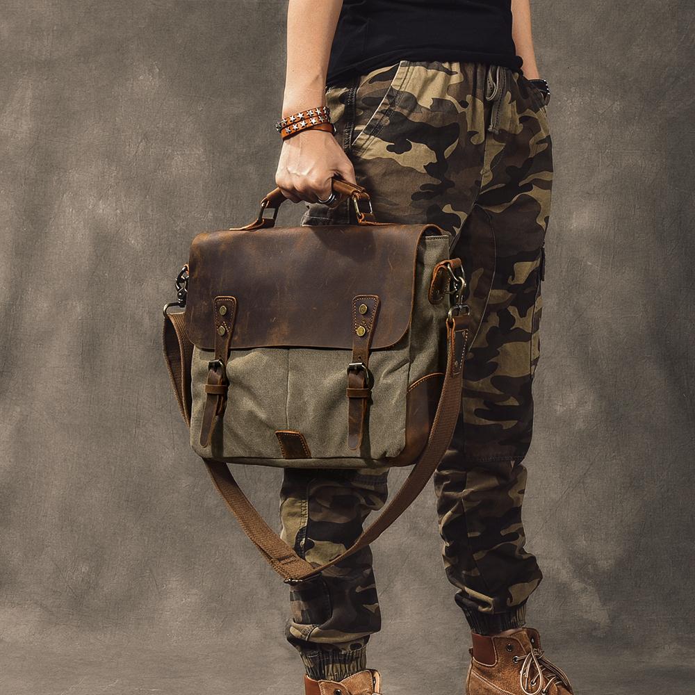 Style: Canvas Leather Mens Womens Green Briefcase Side Bag Brown Messenger Bag Shoulder Bag For Men