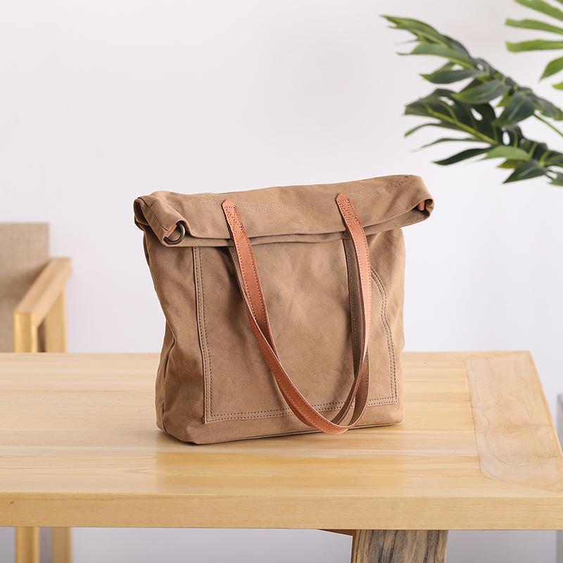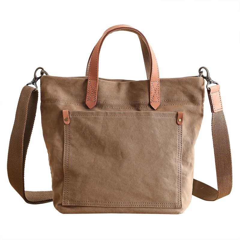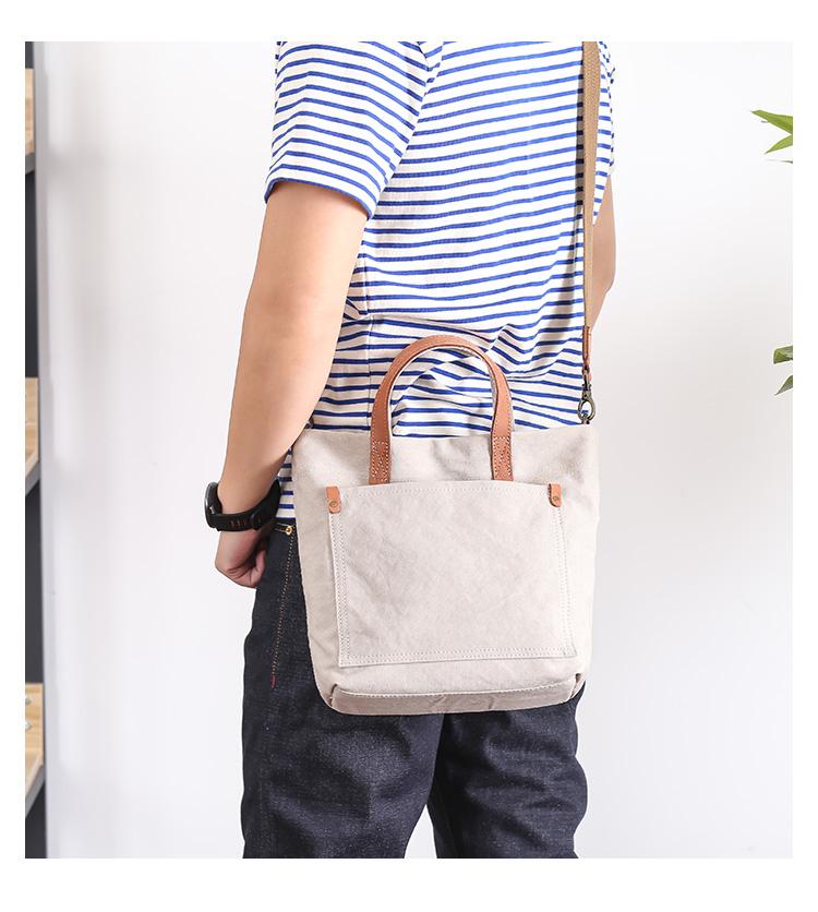 Style: Canvas Leather Mens Womens Large White Handbag Tote Bag Khaki Shoulder Tote Purse For Men
