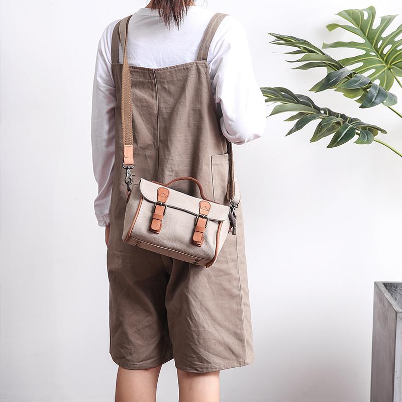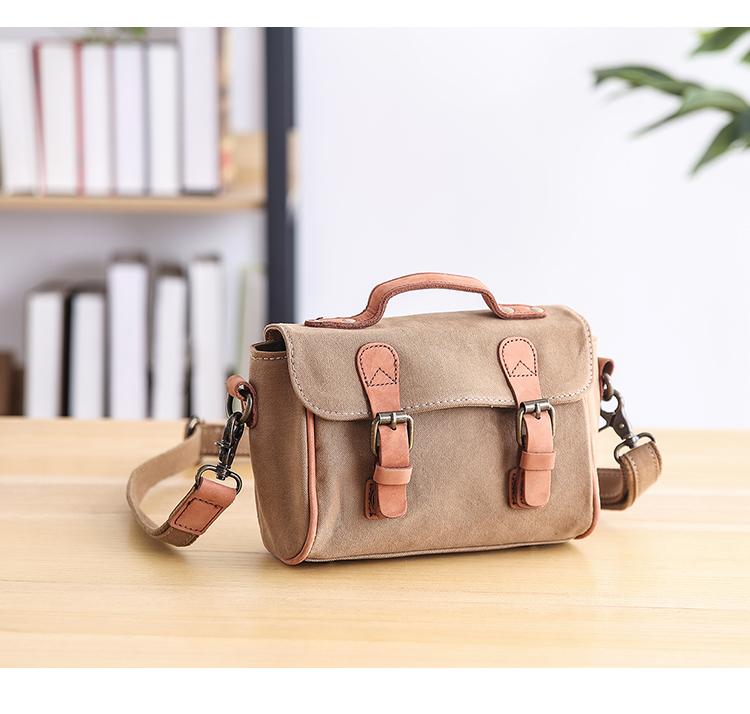 Design: Canvas Leather Mens Womens Simple Portable Messenger Bag Small Shoulder Bag For Men