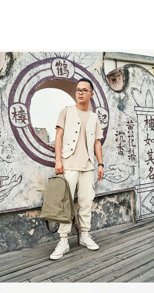 Style: Canvas Mens Backpacks Canvas Gray Green Backpack Canvas College Backpack for Men