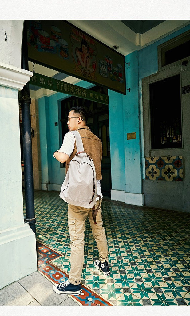 Design: Canvas Mens Backpacks Canvas Gray Green Backpack Canvas College Backpack for Men