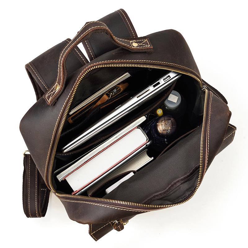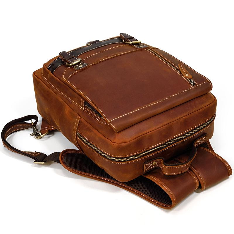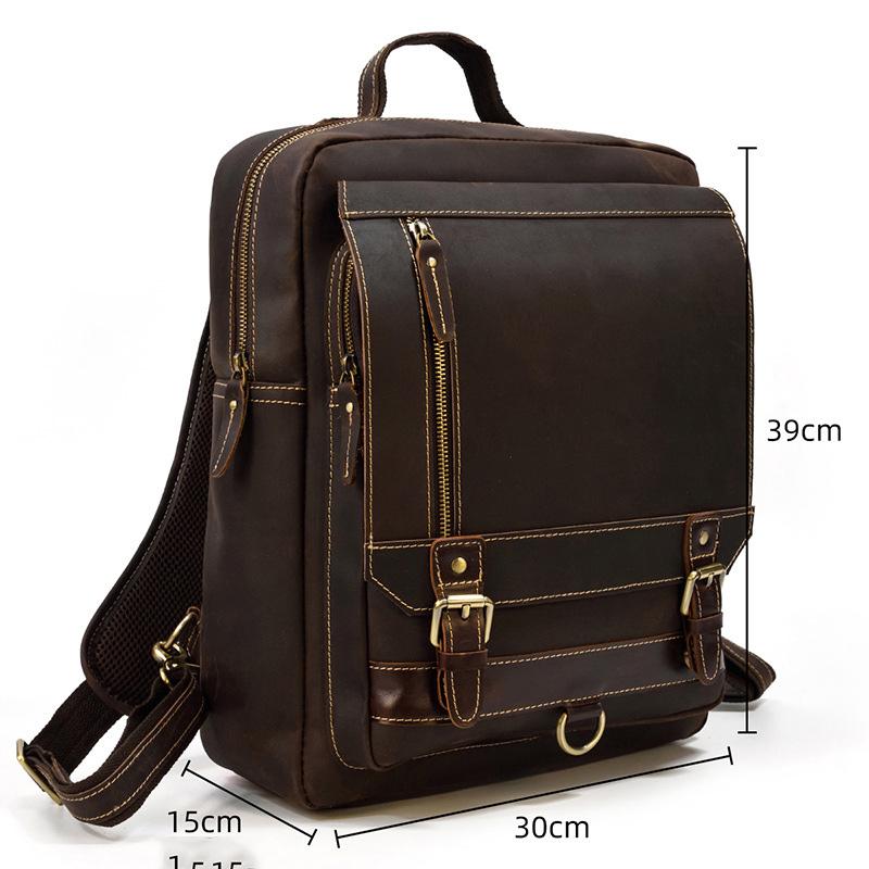 Design: Casual Brown Mens Leather Large School Backpack Satchel Backpack Computer Backpack For MenOverview: